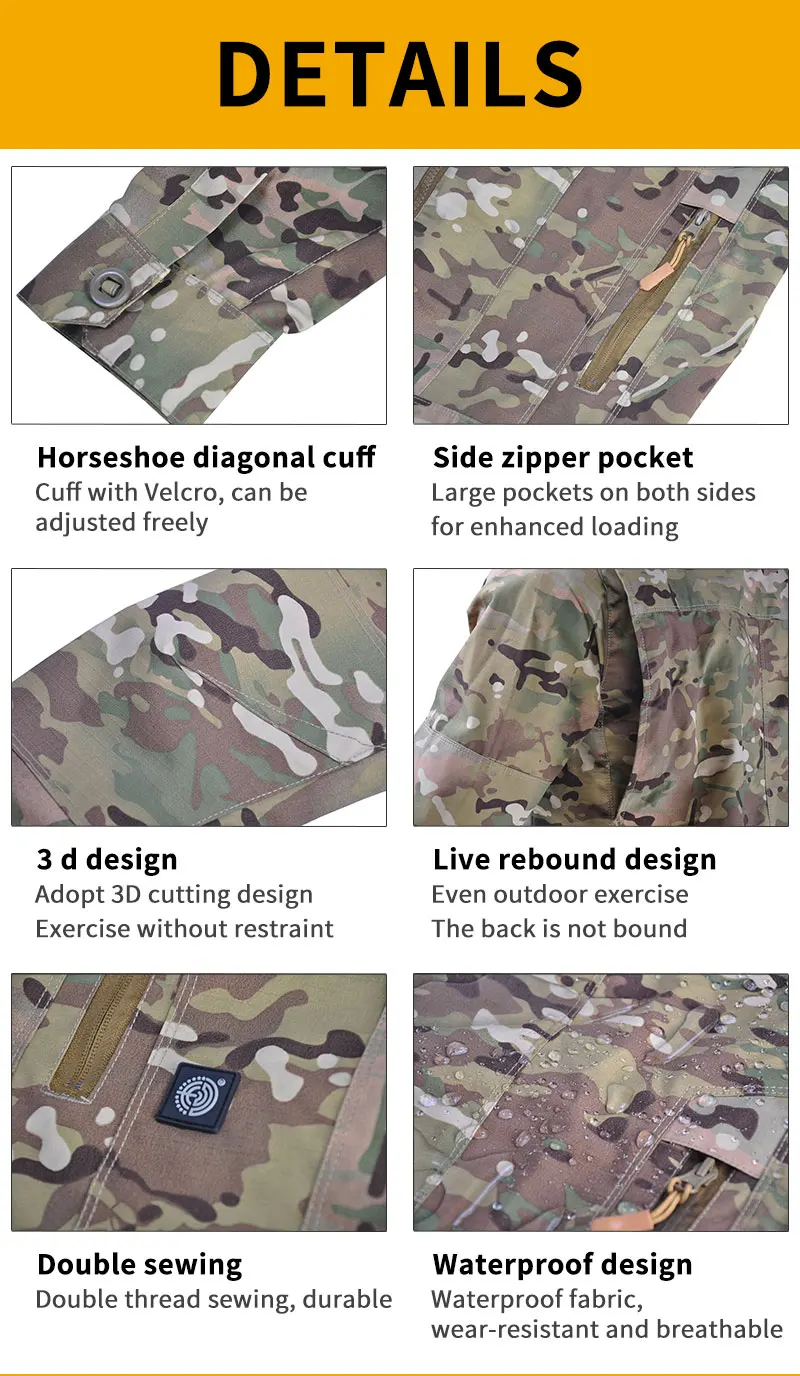 Uniforme de senderismo, traje de combate, chaquetas tácticas, pantalones militares del Ejército, trajes impermeables para hombres, chaqueta cortavientos, pantalones de caza, tela de camuflaje