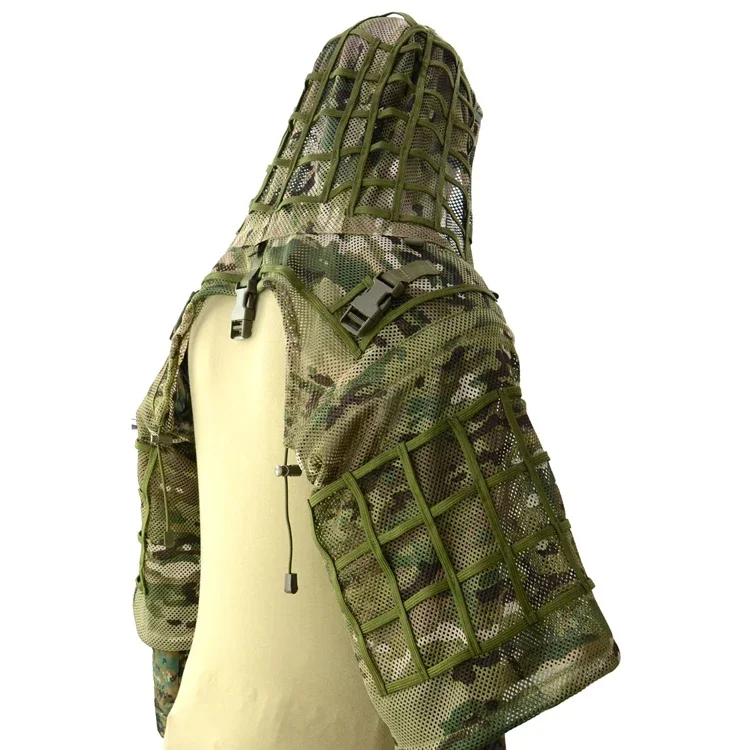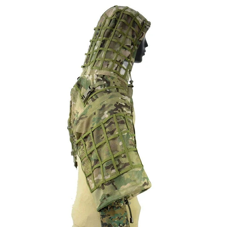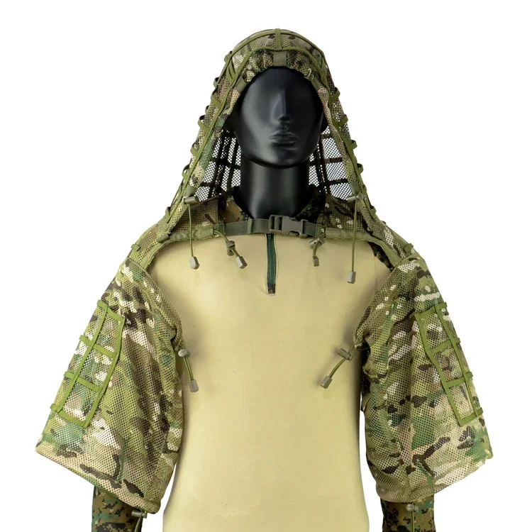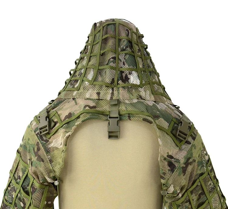 Traje de francotirador Ghillie de malla Airsoft, capucha de Viper, tiro táctico, traje Ghillie 3D, tela Ripstop de caza, abrigo transpirable, traje, equipo