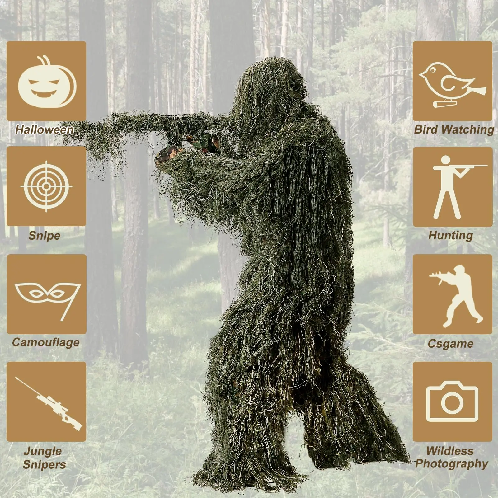 👍 Amplia gama de usos: este traje ghillie de camuflaje 3D combina bien con el medio ambiente y te ayuda a completar tu camuflaje. Es adecuado para airsoft paintball, caza, juegos de tiro, observación de aves, seguimiento de vida silvestre y fotografía, juegos CS, etc. Los trajes Ghillie también se pueden utilizar para Halloween, fiestas de arrastre, conjuntos de películas, etc.