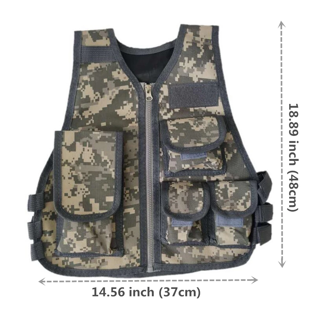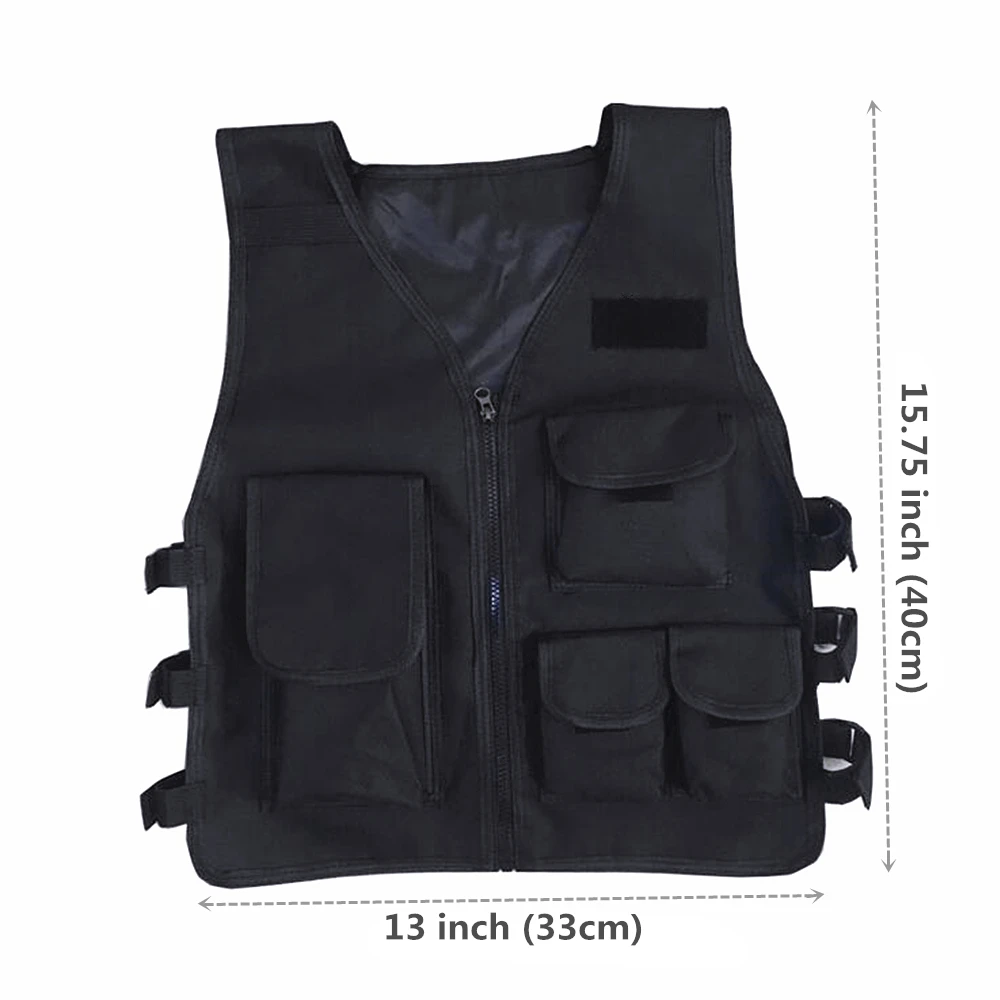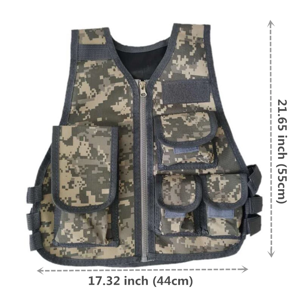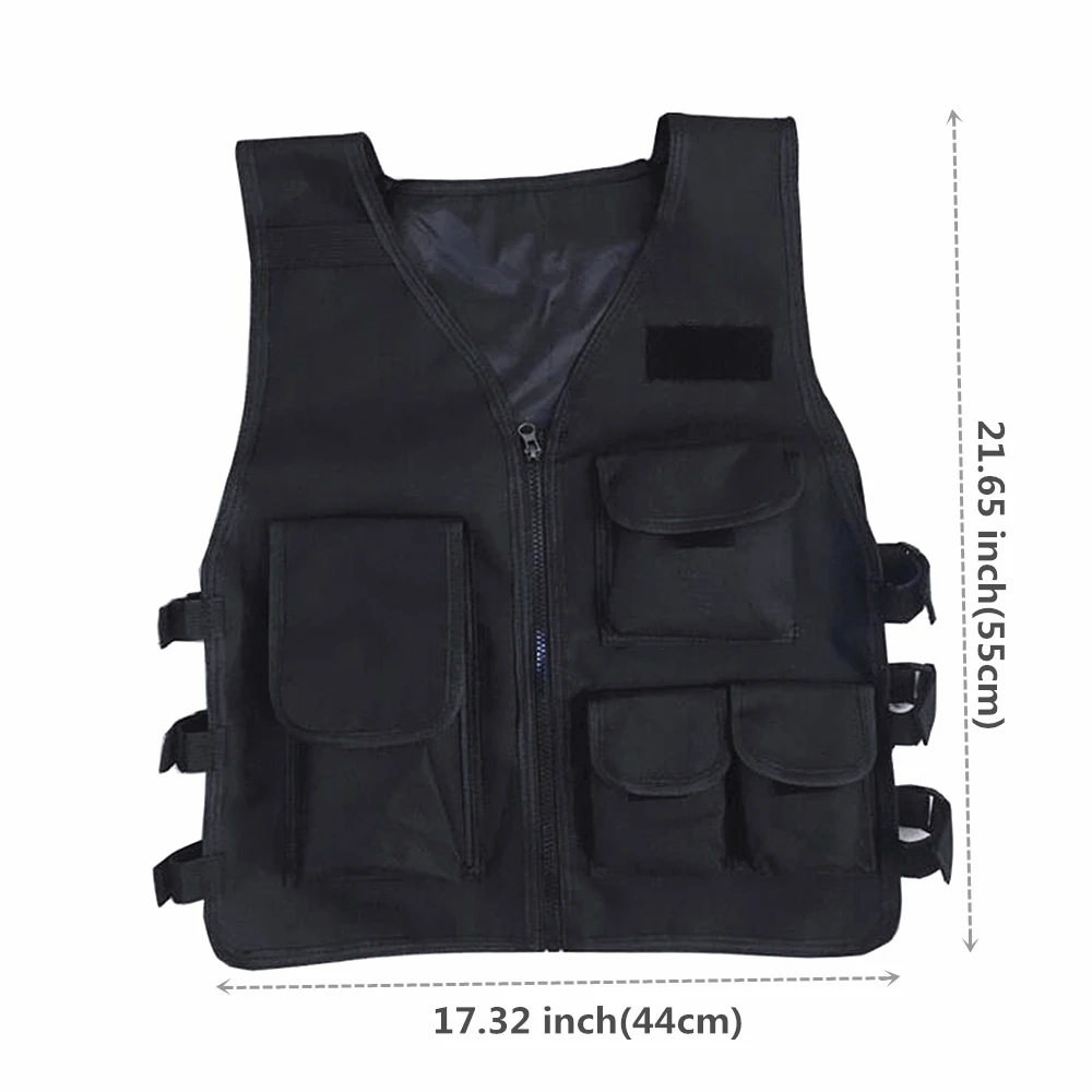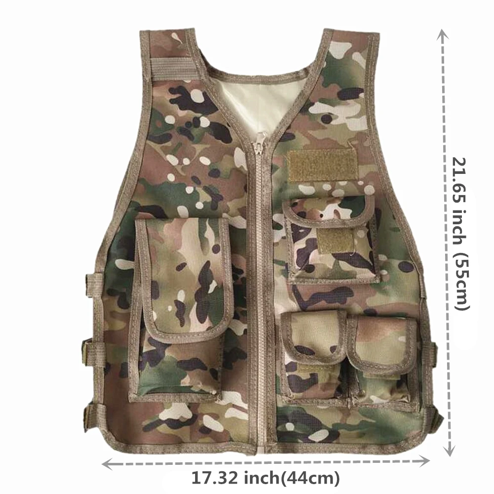 Características:1. Hecho de nylon, que es de alta calidad, agradable a la piel, absorbente del sudor y transpirable.2. Diseño de cuello en forma de V, cómodo y apto para usar, sin restricciones ni cargas para las actividades.3. Las correas laterales izquierda y derecha se pueden ajustar libremente para adaptarse a la mayoría de las personas con diferentes formas de cuerpo.4. Diseño multibolsillo para satisfacer sus diferentes necesidades de almacenamiento, con proceso de costura profesional, no es fácil de deformar después de lavados repetidos.5. Es un buen regalo para las personas que aman los juegos de guerra.Especificación:Condición: 100% nuevoMaterial: nailonTipo de artículo: chalecoColor: Negro, CP, ACU, Camuflaje WoodlandTamaño: aprox. 40cm (Niño)/48cm (Niño)/55cm (adulto)