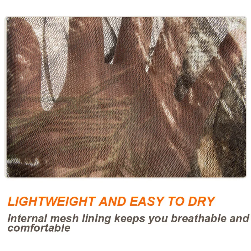 El traje es muy bueno. Transpirable. Camufla. Lo recomiendo a todos.