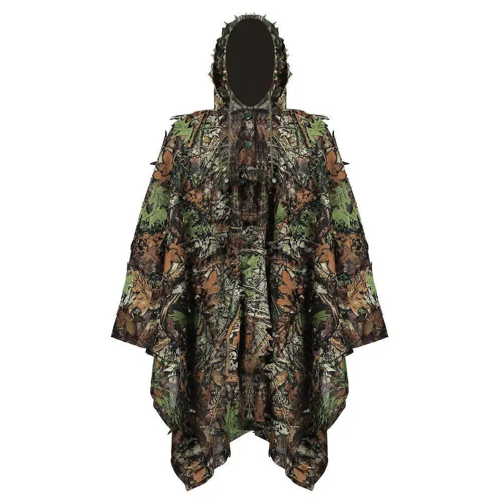 Color: Hojas de camuflaje del bosque Material: poliéster de secado rápido Tamaño: 160cm/63 pulgadas * 120cm/47,2 pulgadas (L * W) sea invisible en el bosque con el diseño frondoso de camuflaje del bosque en 3D, hace que la caza sea más fácil y divertida. Poncho de camuflaje de tamaño libre, gran herramienta para la caza, tiro, monitoreo, fotografía de Vida Silvestre y observación de aves, etc. El paquete incluye: 1 * ropa de camuflaje