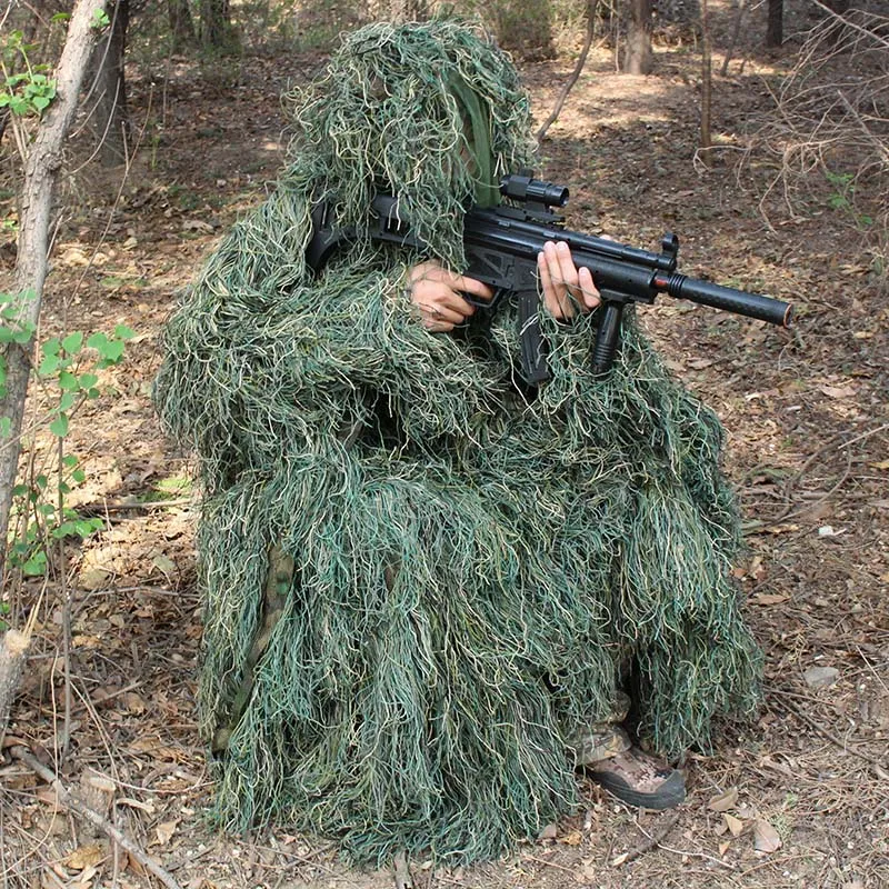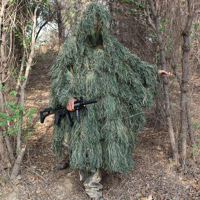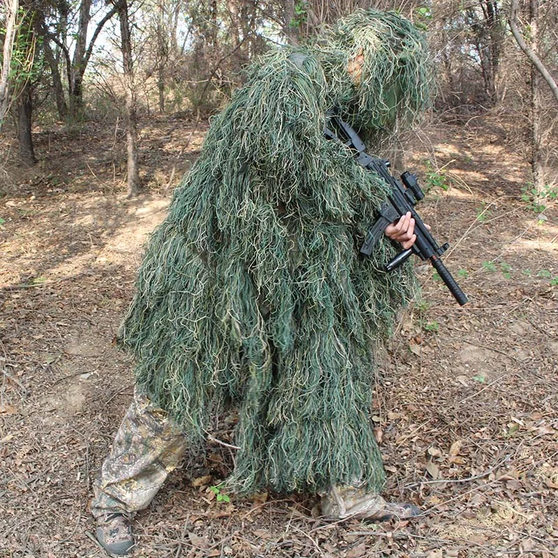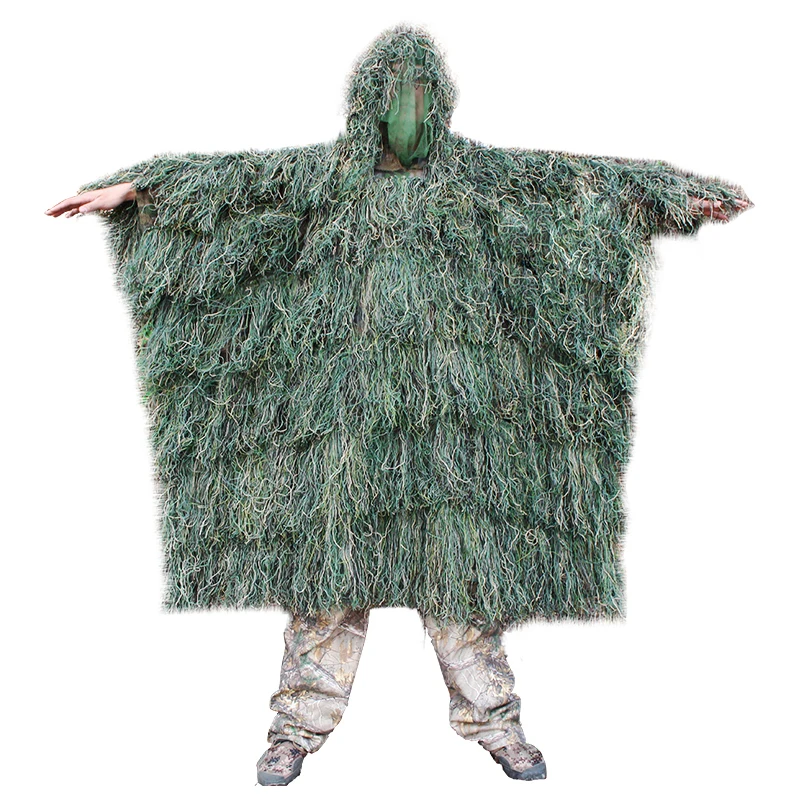 Traje Ghillie de caza al aire libre para hombre, ropa Ghillie, Top para hombre, traje Gilley de caza de camuflaje, Poncho de capa de caza en la jungla al aire libre