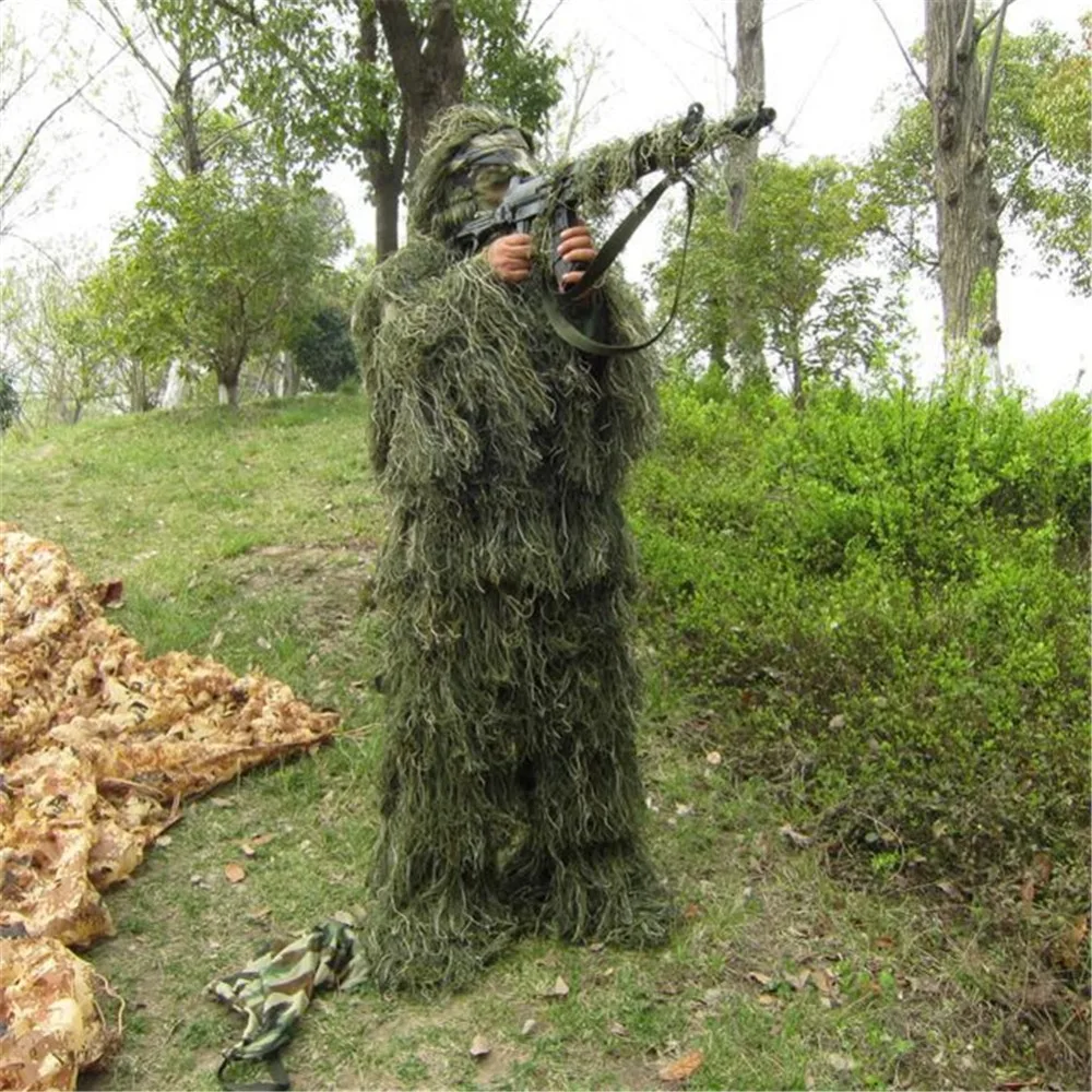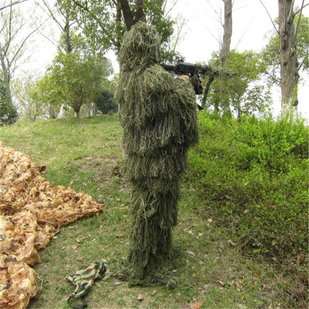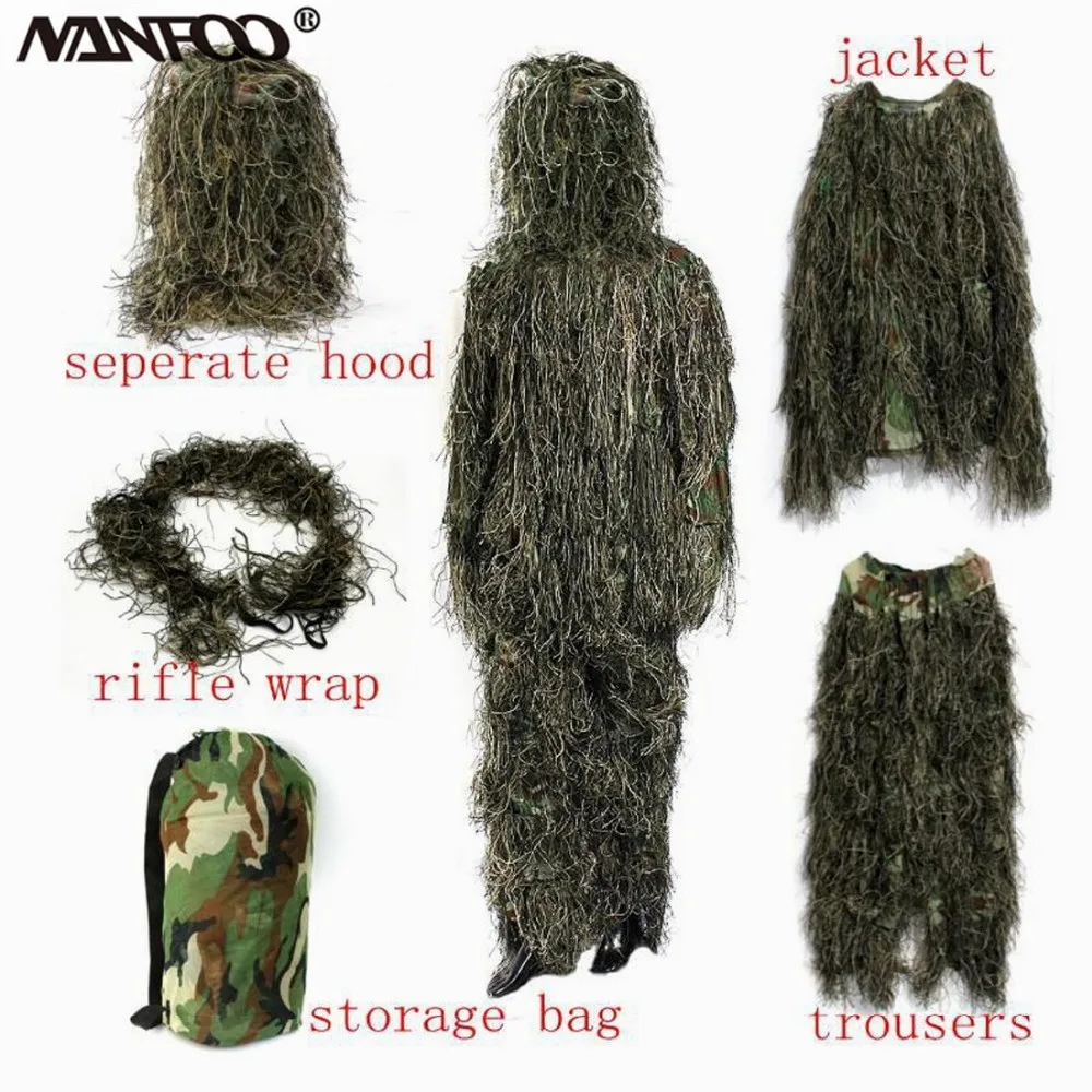 1 * trajes Ghillie para adultos (chaqueta + pantalones + capucha + envoltura de pistola + bolsa portátil)