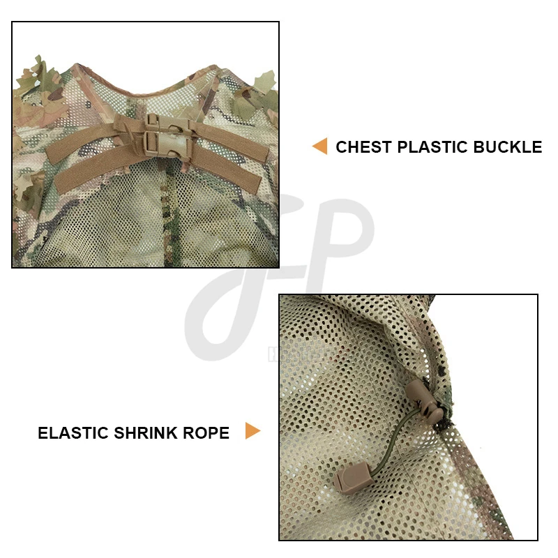 2. Cuerda ajustable: el traje Ghillie tiene una cuerda elástica y un elástico de cintura ajustable para adaptarse a diferentes tamaños de cuerpo.