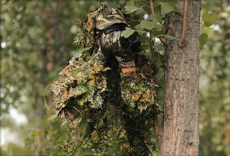 Traje Ghillie al aire libre para hombres y mujeres, ropa de camuflaje, traje de jungla CS, ropa de entrenamiento con hojas, traje de caza, pantalones, chaqueta con capucha
