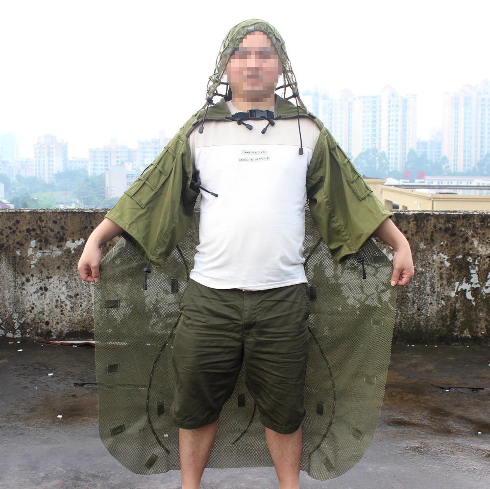 Ejército Fan francotirador tiro al aire libre entrenamiento de campo táctico Ghillie traje accesorio observación de aves caza desmontable ocultar capa de camuflaje