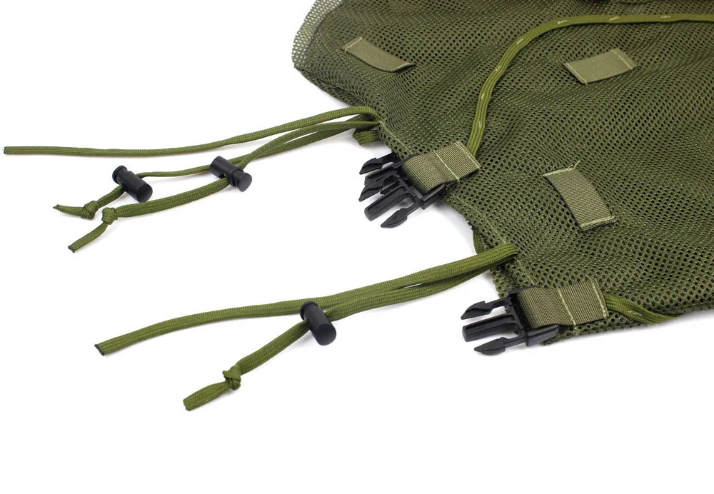 Material: tela de malla de nylon + botón KAM + cuerda de nylon.
