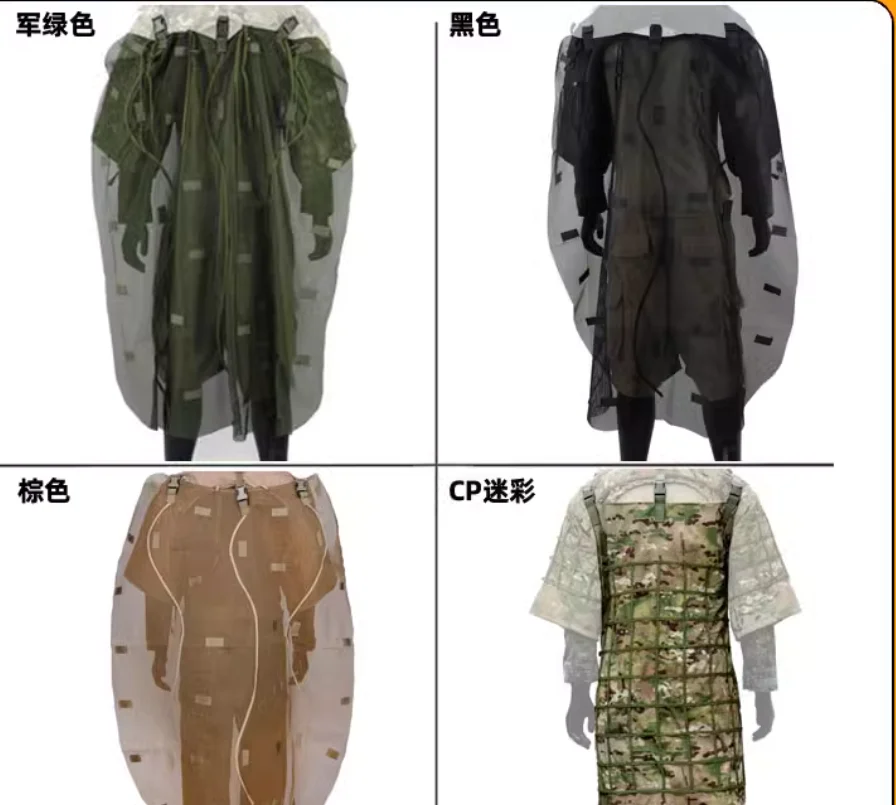 Para lograr el mejor efecto de camuflaje, sugerimos material de camuflaje como hilo, hojas, ramas, etc. en la capa.