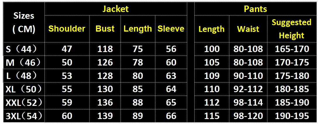 Tipo de traje: chaqueta + Pantalones; chaqueta + Pantalones + guantes; chaqueta + Pantalones + sombrero + bufanda + guantes