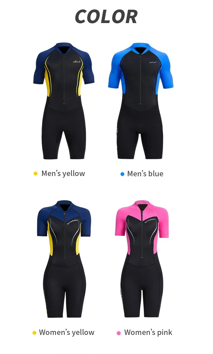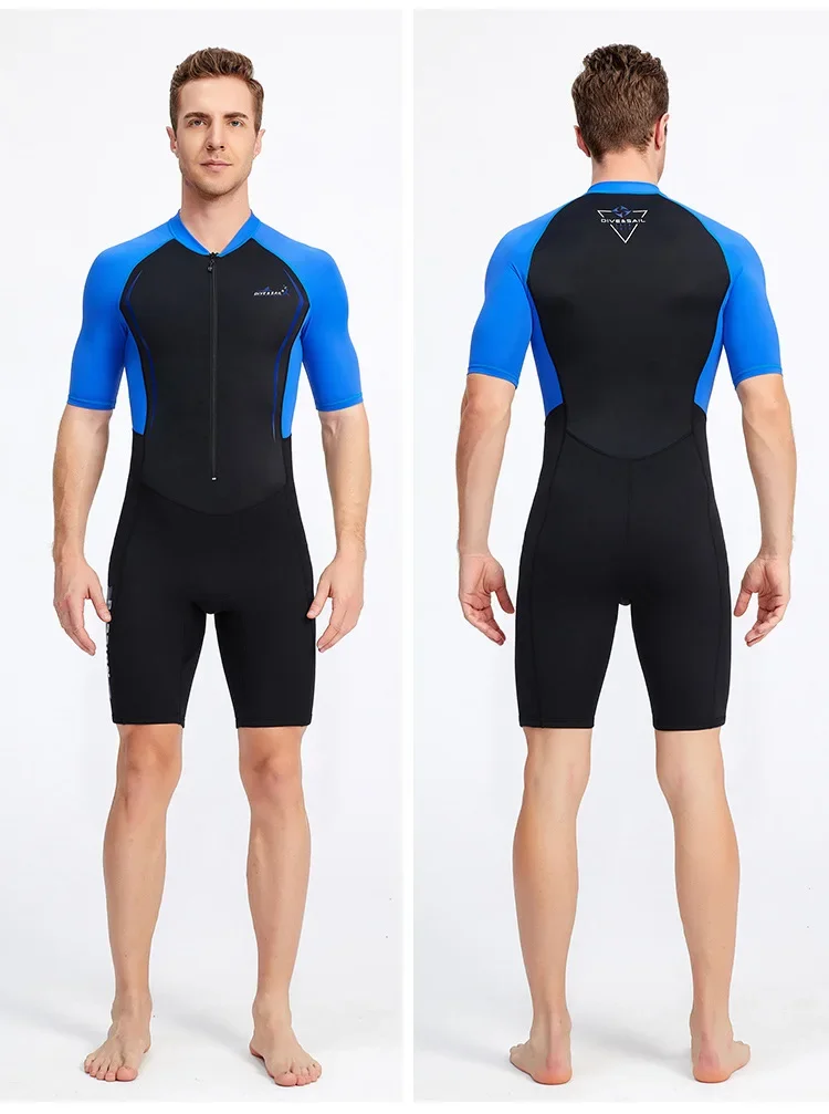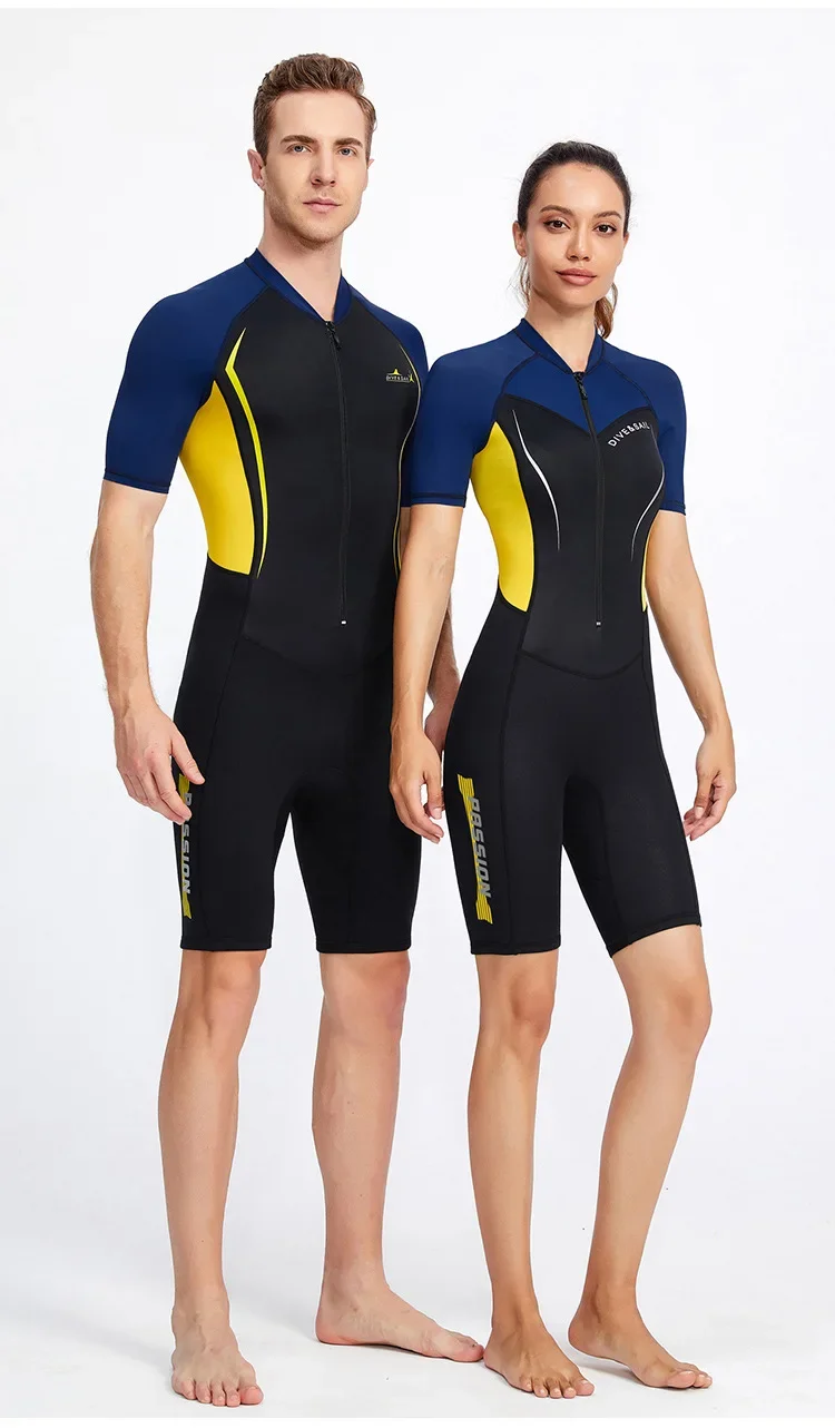 Traje de neopreno térmico de 1,5 mm: este traje de neopreno corto se compone de 2 partes.La parte superior principal del cuerpo está hecha de neopreno de 1,5 mm de espesor para mantener el calor al bucear; Otro en mangas y piernas, hecho de nailon más fino con protección ultravioleta y tela de spandex para enfriar.