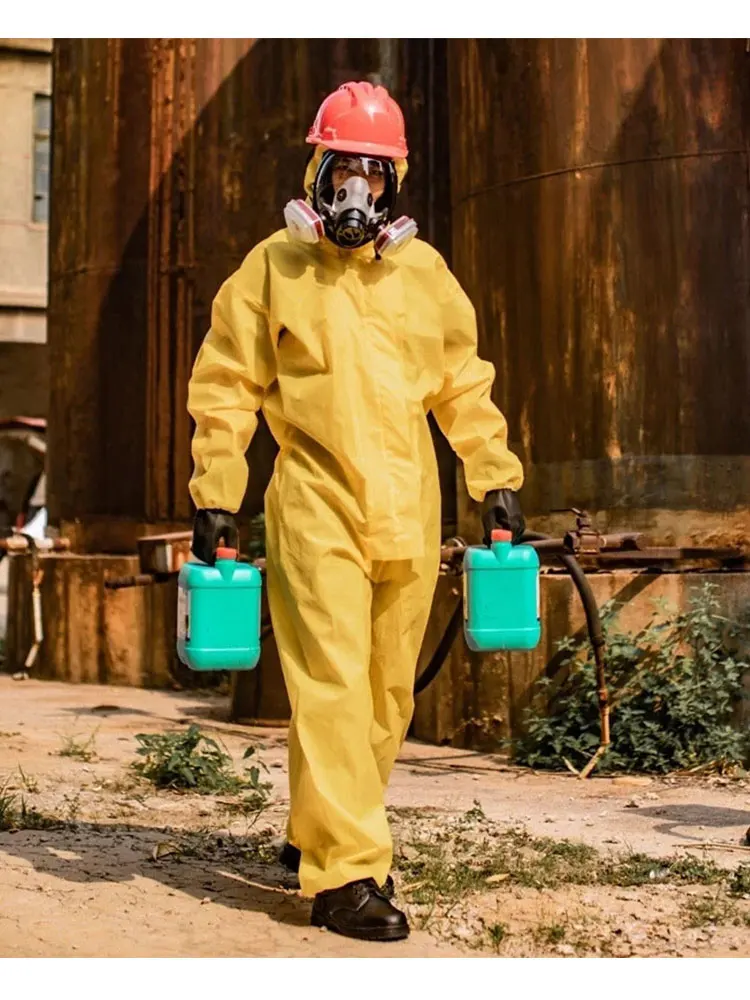 Traje protector de trabajo a prueba de salpicaduras Industria química Monos protectores de seguridad resistentes a ácidos y álcalis con sombrero