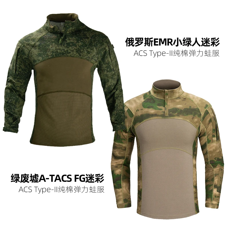 Traje de rana de combate táctico Atfg Green Ruin Emr, algodón elástico, piel de rana, parte superior única, hombre pequeño, Ruso