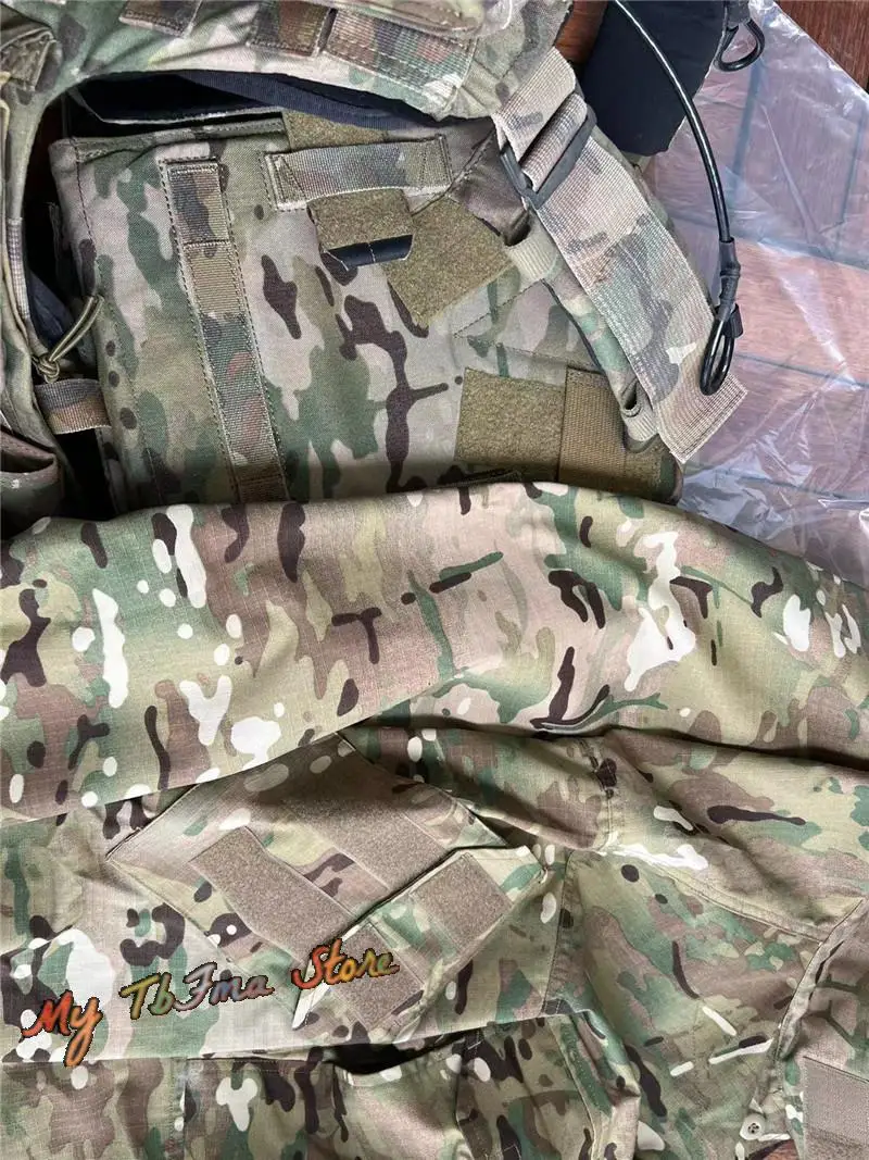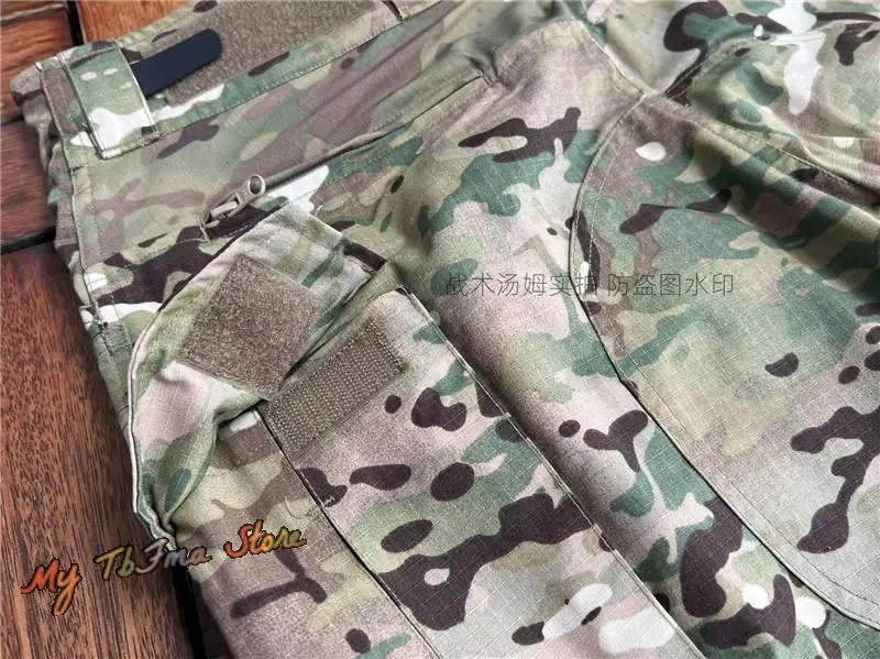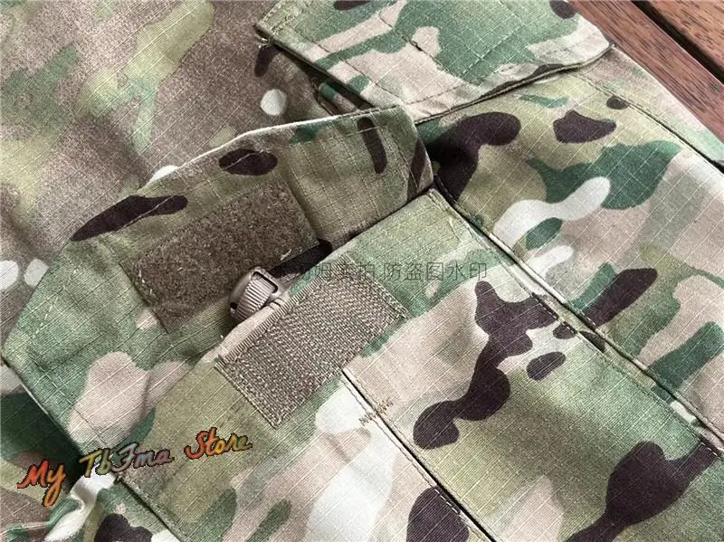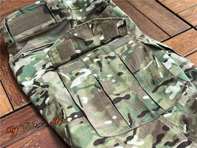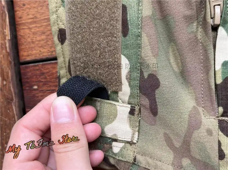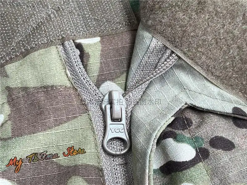 Tela de camuflaje hecha de una mezcla de algodón polyestYCCnd La zona de color sólido está hecha de tela elástica estilo piel de naranja mezclada con nylon y spandex. La cremallera adopta la cremallera YCC