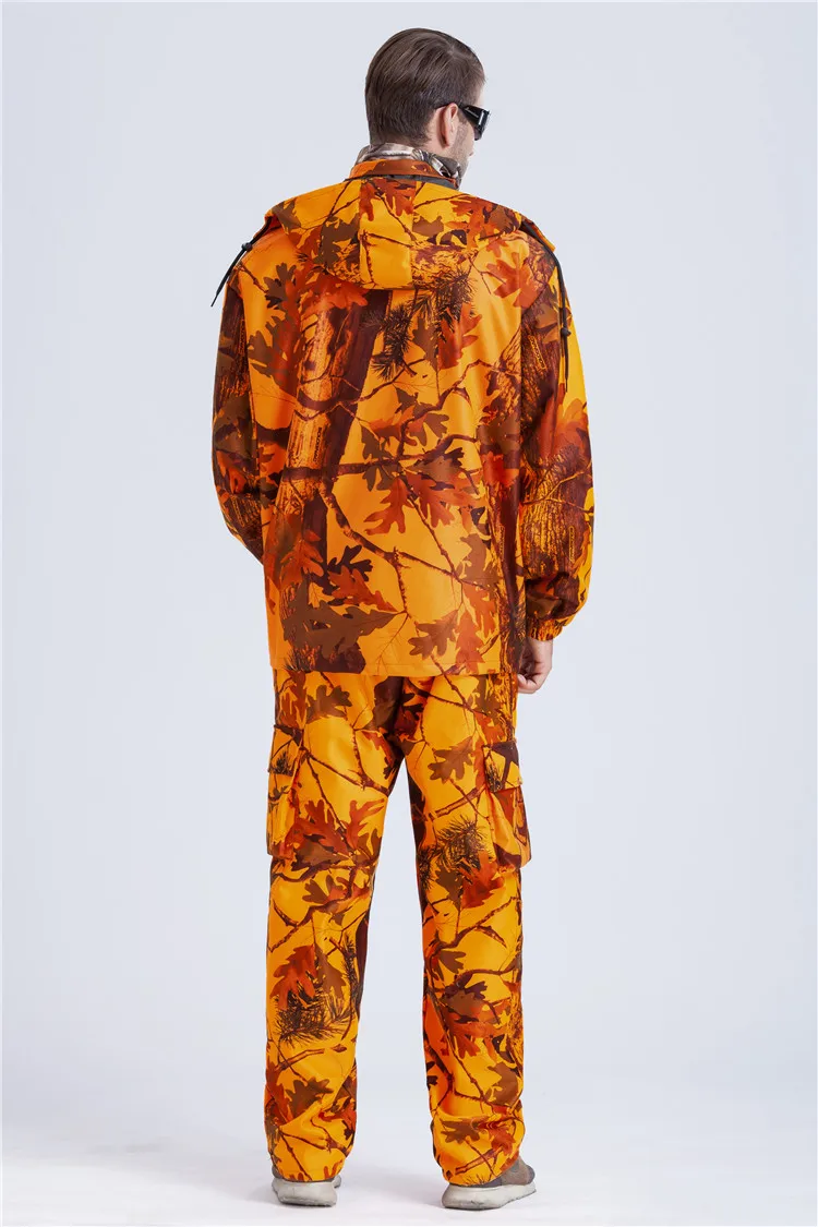 Traje de Safari de camuflaje biónico para exteriores, conjunto de ropa de observación de aves naranja impermeable de gran tamaño, traje Ghillie de caza 4XL A2F121