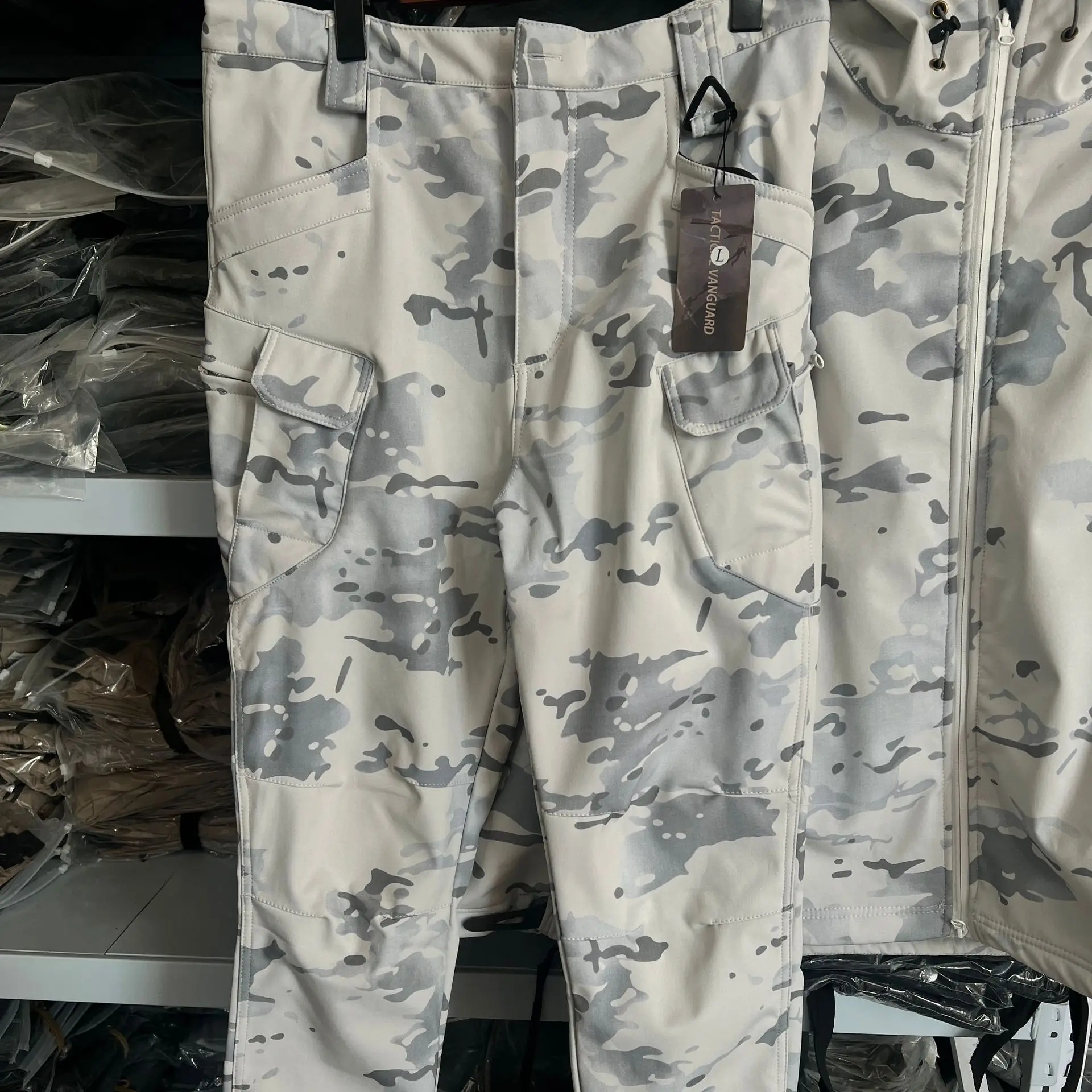 Traje softshell de camuflaje para nieve, Softshell táctico de piel de tiburón con forro polar y cremallera gruesa para las axilas
