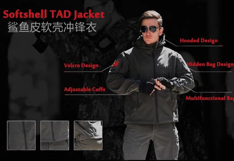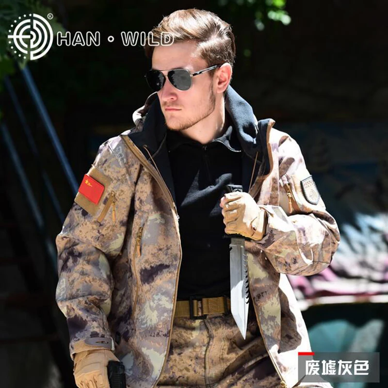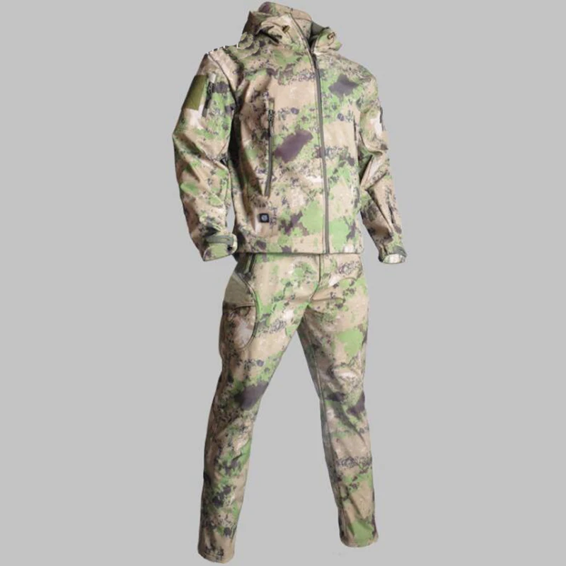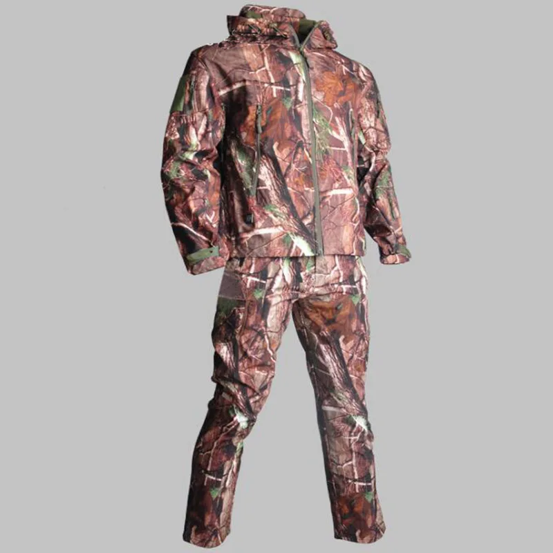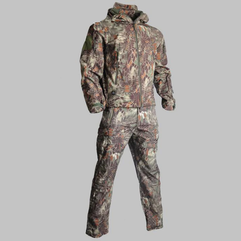 Traje de piel de tiburón Softshell TAD táctico de camuflaje para hombre, caza al aire libre