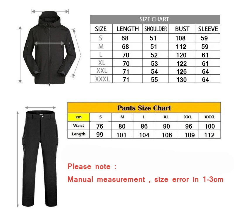 Nombre del producto :Trajes tácticos de piel de tiburón (chaqueta + pantalón)