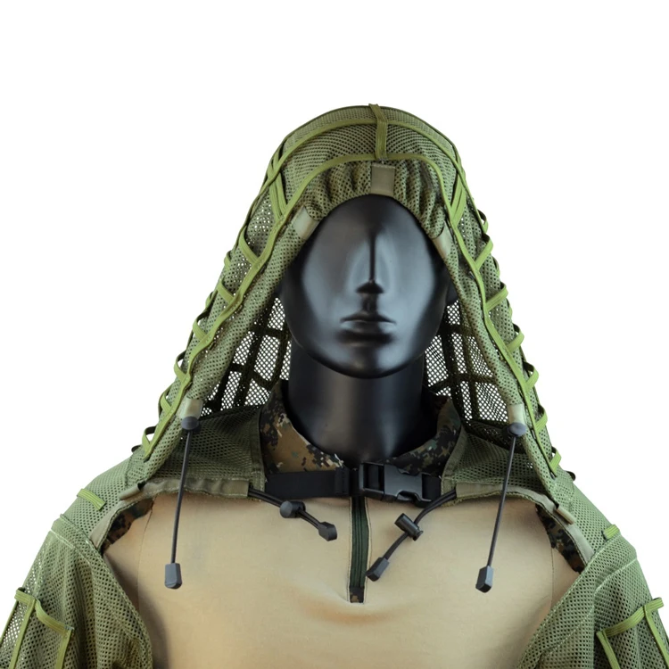 Traje táctico de francotirador 3D Camo Ghillie, traje Ghillie de malla Airsoft, capucha de Viper, caza, tiro, combate, abrigo de tela Ripstop, ropa