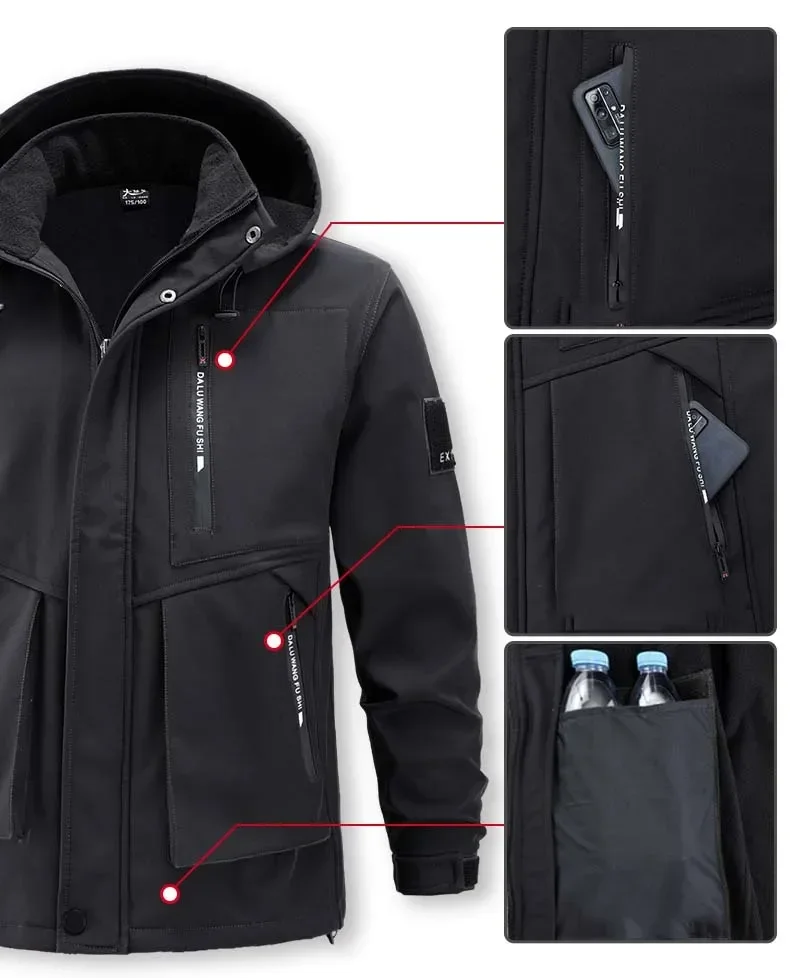 Traje táctico de invierno para hombre, traje de camuflaje grueso, conjuntos de entrenamiento impermeables, chaqueta con capucha multibolsillo, pantalones de lana, ropa de caza, 2 uds.