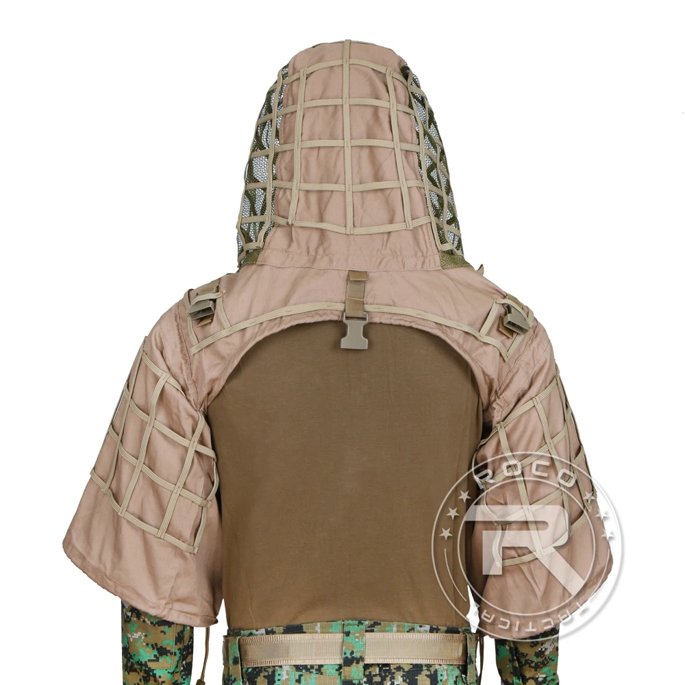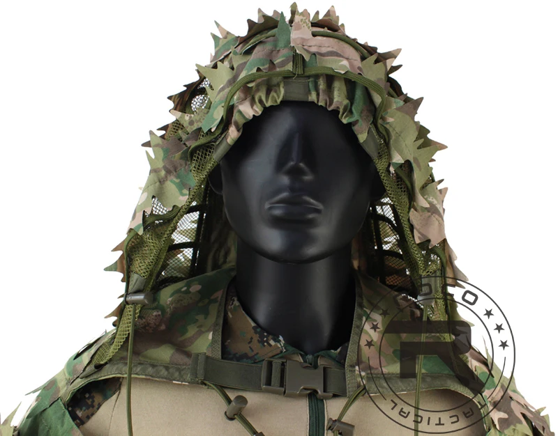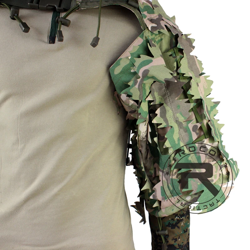ROCOTACTICAL Traje Ghillie Táctico Transpirable Ghillie Viper Hood con 3D Leafy Stripes Sniper Coat para Wargame, Caza, CS