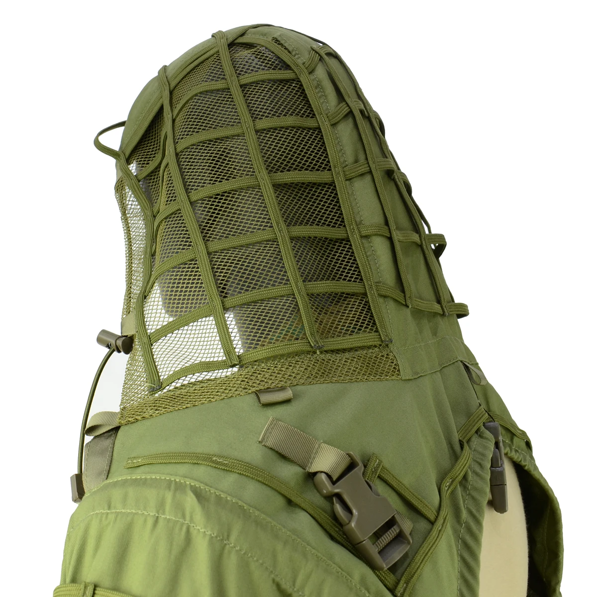 Capucha transpirable, ligera y ventilada, hecha de malla.