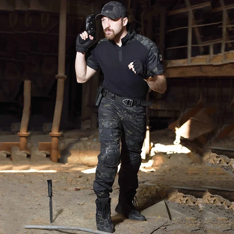 4.Cierres ajustables de gancho y bucle en la parte inferior y rodillas de los pantalones.