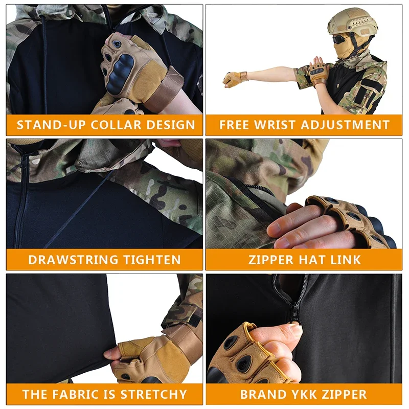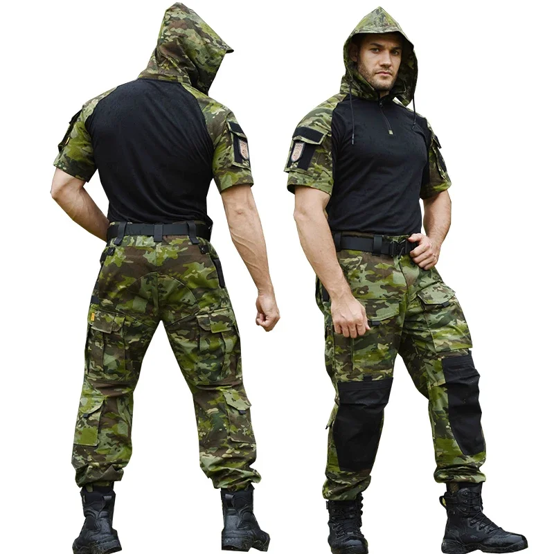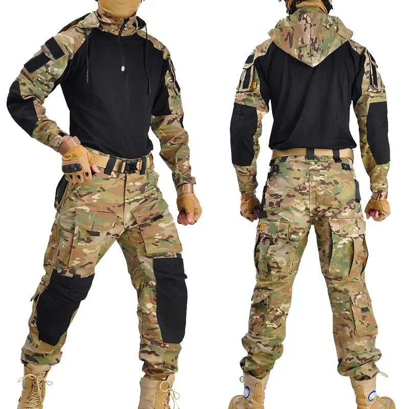 Traje de uniforme de combate táctico BDU, camisa con capucha, pantalones, conjunto de camuflaje, ropa de caza, senderismo al aire libre, entrenamiento, Airsoft, Paintball
