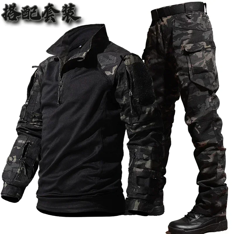 Trajes al aire libre para hombre, camiseta transpirable duradera para exteriores, pantalones, conjuntos para hombre, ropa de trabajo, trajes de caza de entrenamiento militar, camuflaje con múltiples bolsillos