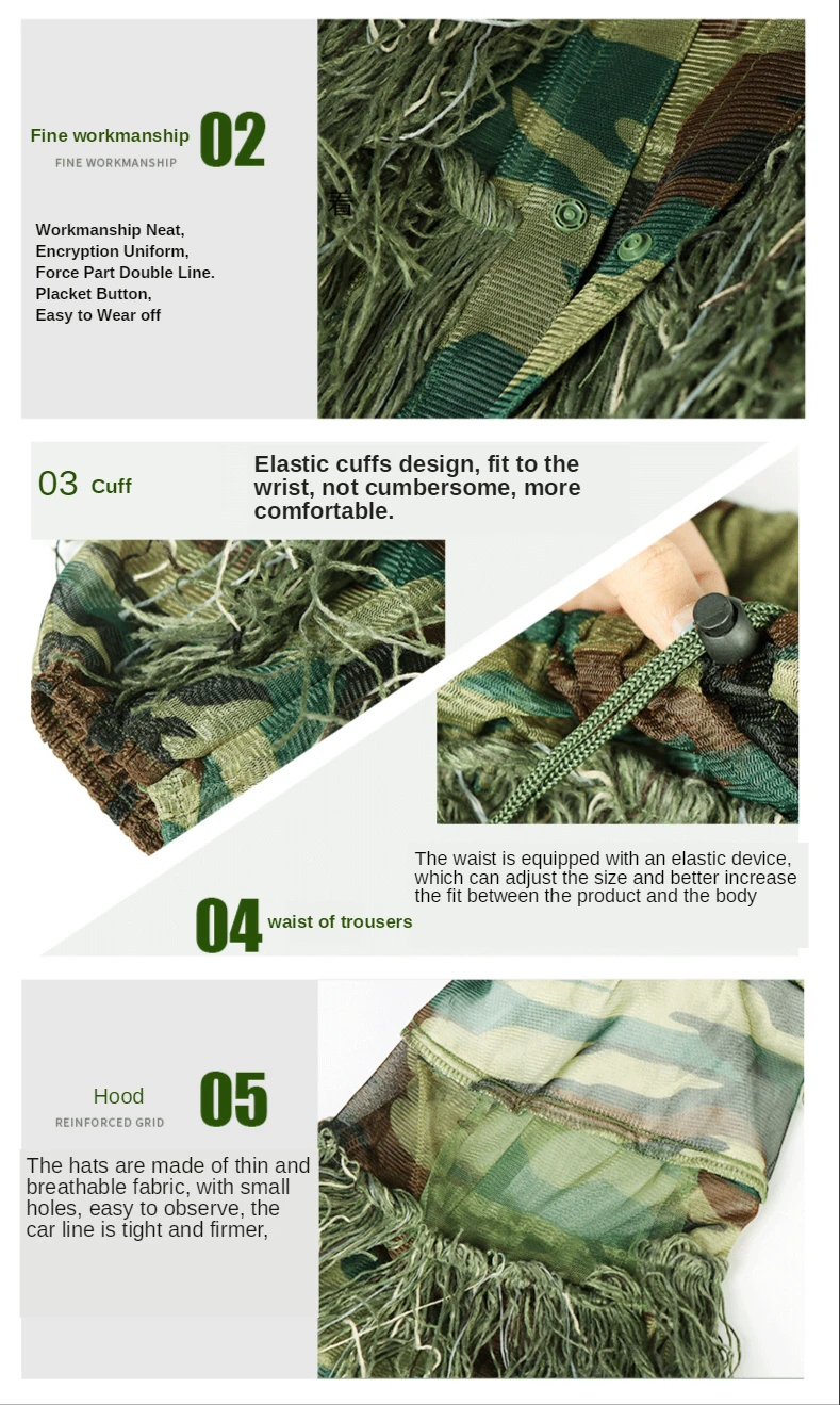 - Lavable a mano, ligero, adecuado para caza y disfraz.