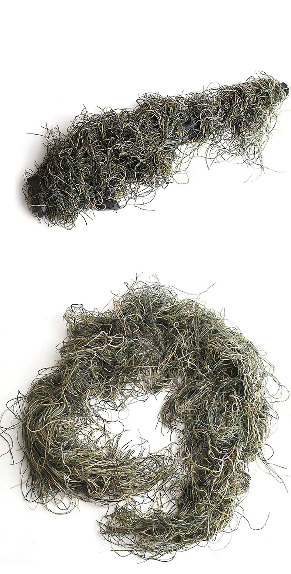 120cm Rifle Rag Ghillie 3D camuflaje francotirador cubierta de rifle envoltura arco envoltura francotirador Airsoft Paintball selva fores YowieEnvuelve un Ghillie alrededor de tu rifle o arco.¿Por qué estar totalmente oculto pero alejar tu posición por tu Arma?Construido con la misma red utilizada en trajes ghillie.Simplemente envuélvalo alrededor de su rifle o arco, ya que envolverá un vendaje alrededor de un tobillo dolorido con bucles elásticos en cada extremo para mantenerlo en su lugar.Lo suficientemente largos como para cubrir cualquier rifle y lo mejor de todo, vienen en los mismos colores para combinar con tu Ghillie Suit.¡Así que pida uno hoy y esté fuera de la vista! La nueva envoltura de rifle liviana combina con los colores de la mayoría de los trajes ghillie. Repelente al agua.