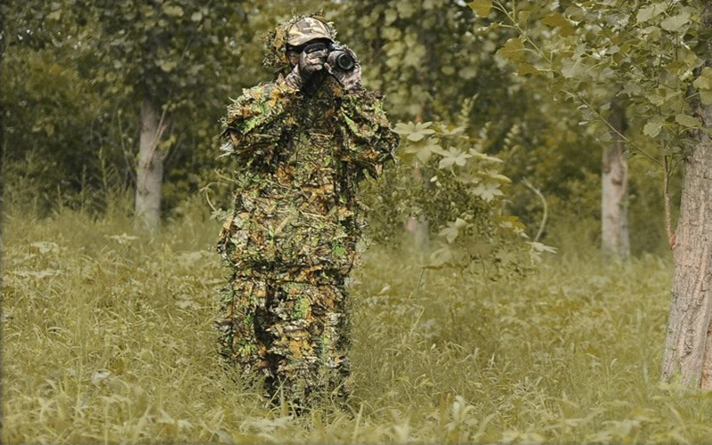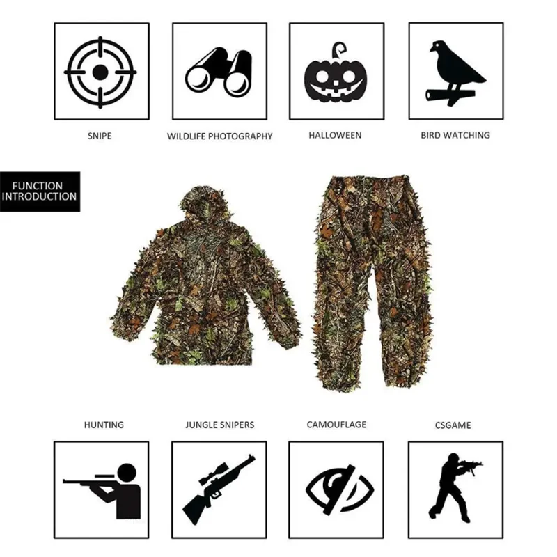 Trajes de hojas de jungla, pistola táctica militar, camiseta de entrenamiento de francotirador Ghillie + Pantalones, ropa de caza de tiro Airsoft del ejército al aire libre
