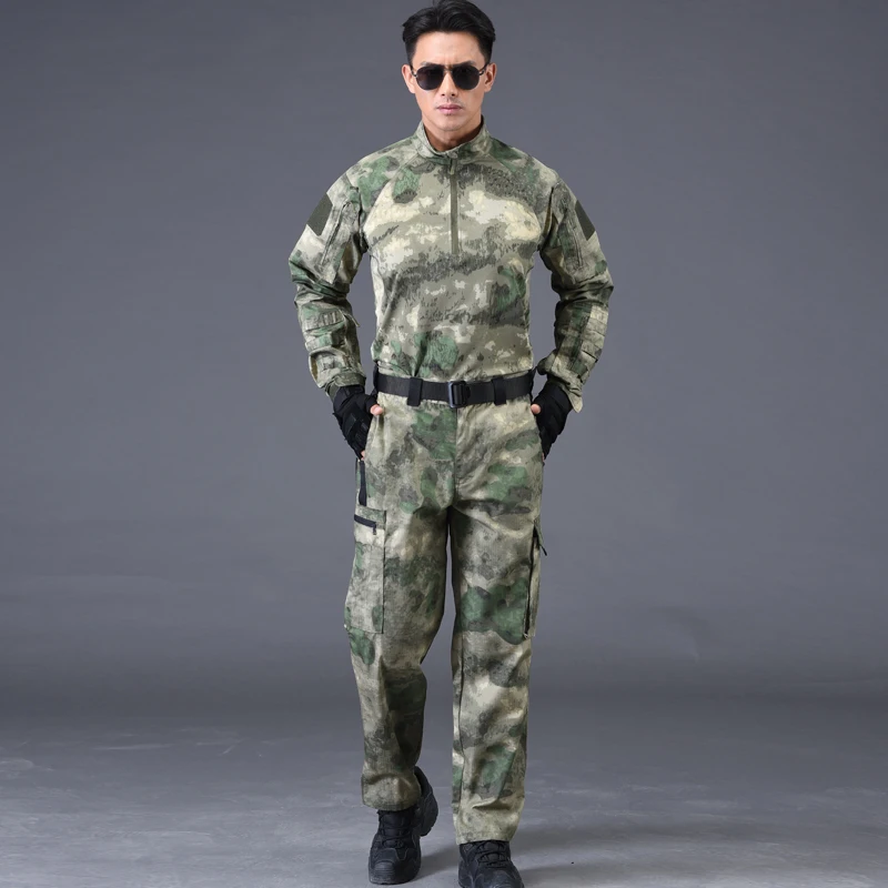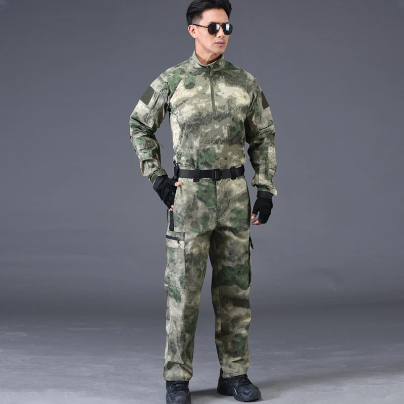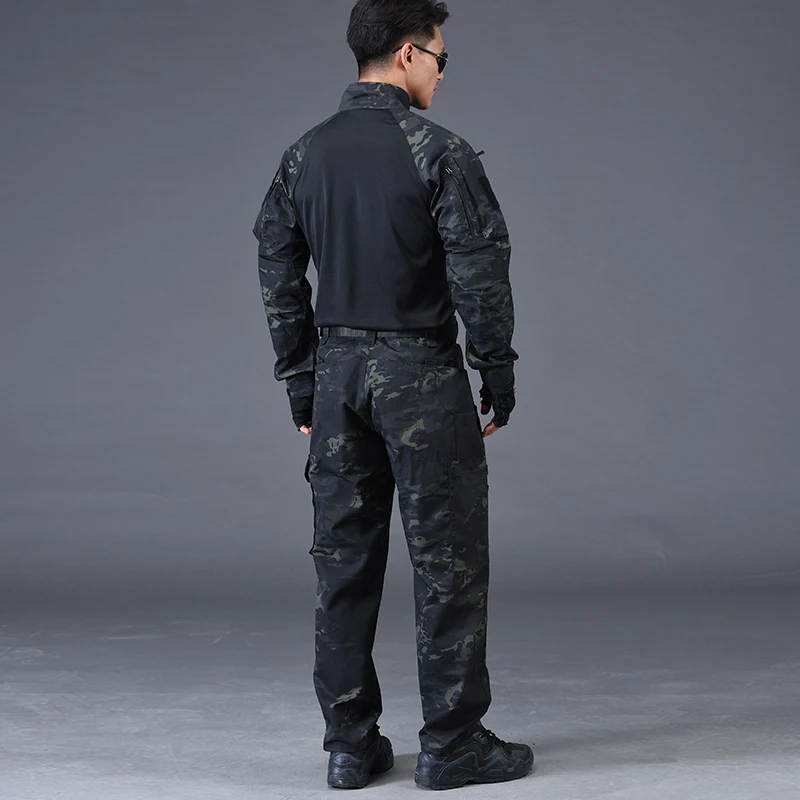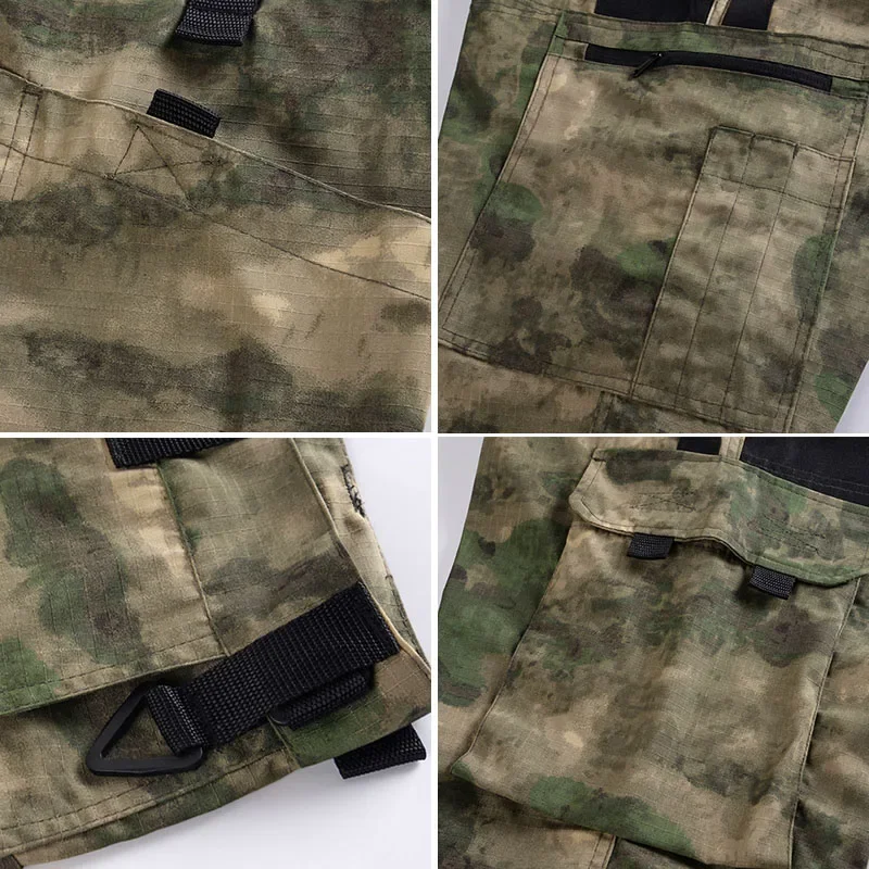 Trajes tácticos de camuflaje para ruinas, conjuntos para hombres, camisetas de entrenamiento transpirables de secado rápido, pantalones Cargo resistentes al desgaste con múltiples bolsillos para caza