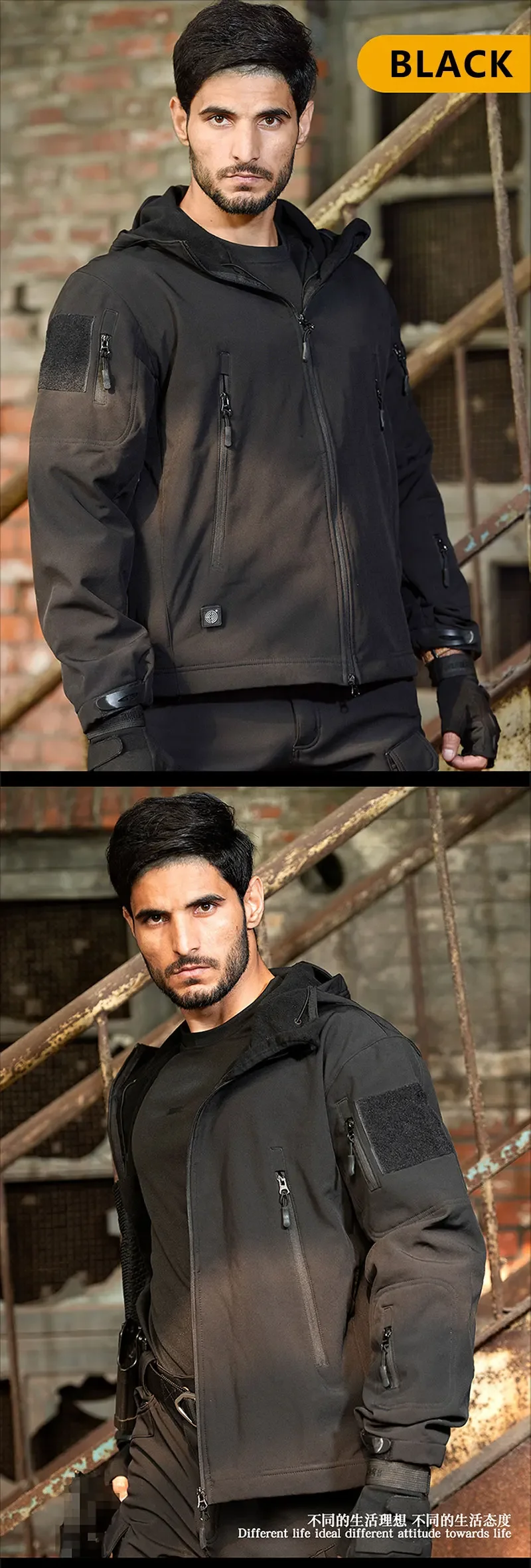 Trajes tácticos, conjunto de invierno para hombre, trajes a prueba de viento para exteriores, chaquetas con múltiples bolsillos, abrigos con capucha de concha suave, pantalones de trabajo
