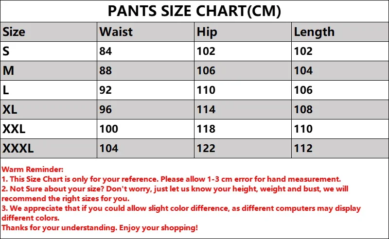 3.2 cinta en las bolsas del brazo4. Cremallera duradera de alta calidad, suave y resistente al desgaste.Pantalones:
