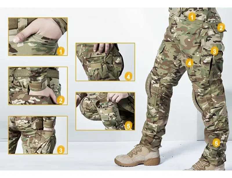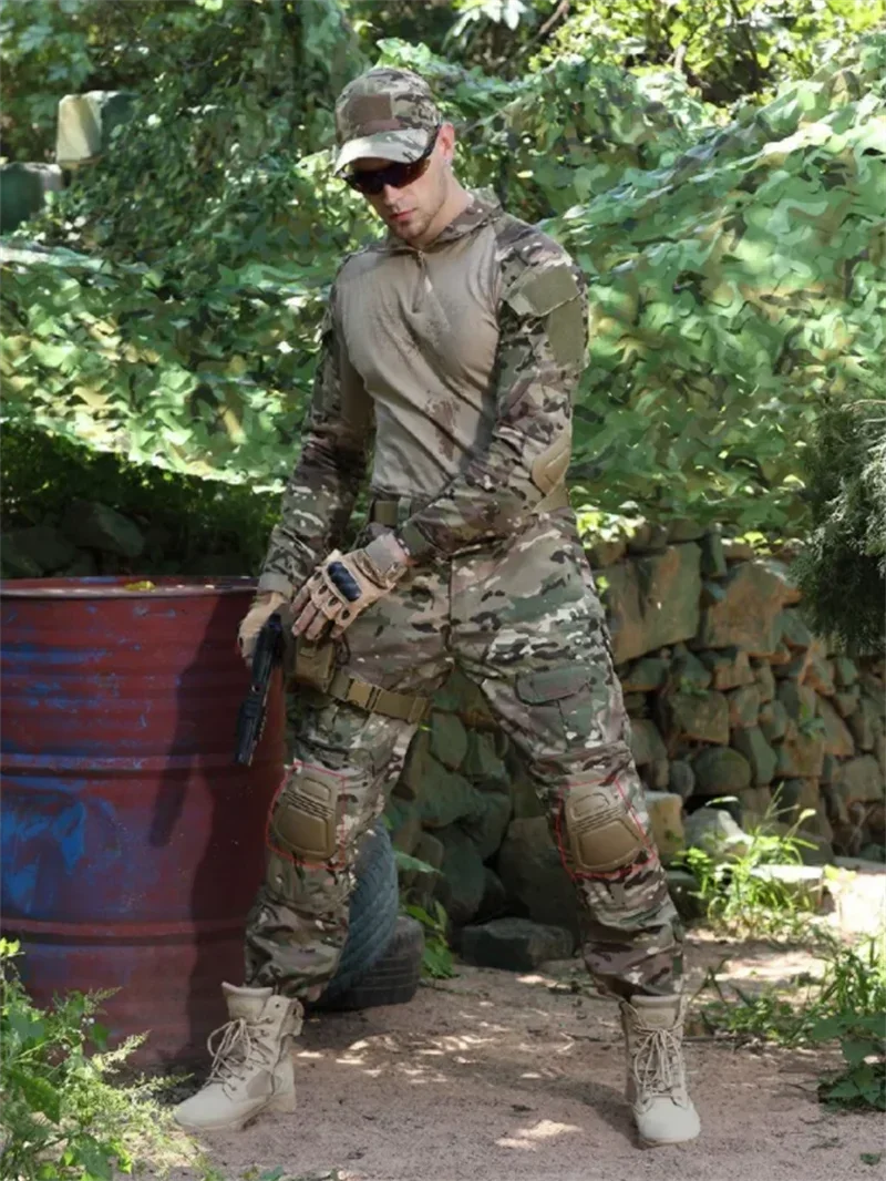 Trajes tácticos, trajes de uniforme militar, camisas de caza de camuflaje, pantalones Cargo + almohadillas, conjuntos de ropa de caza Airsoft Paintball al aire libre 1