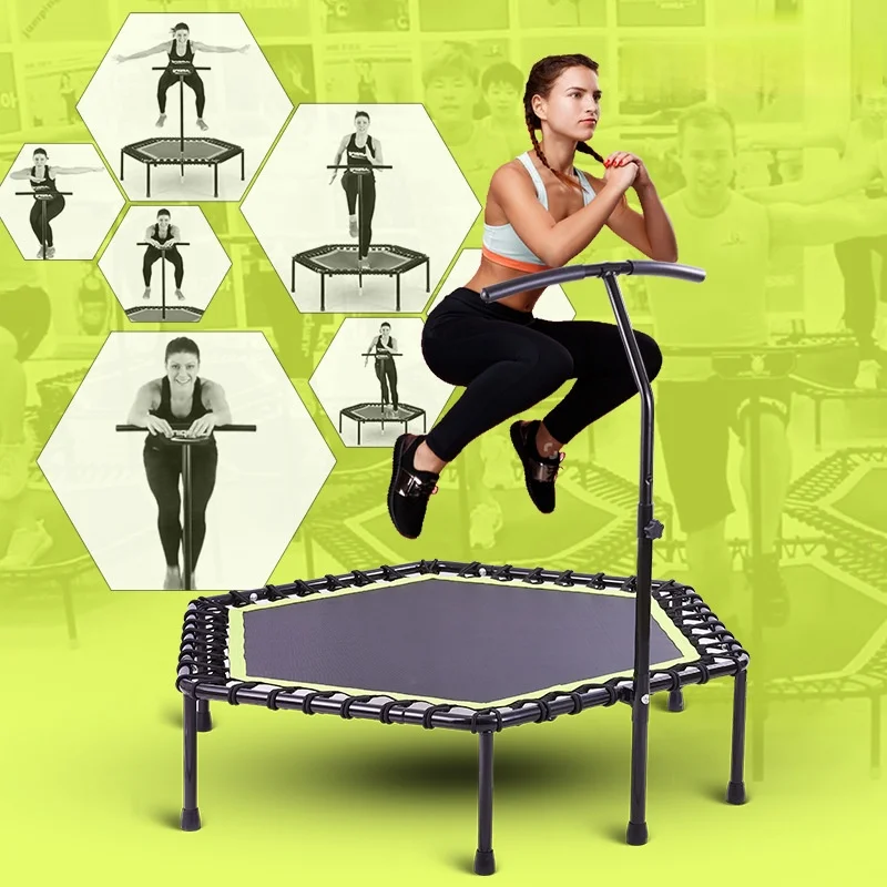 Trampolín plegable para ejercicios con asa, rebote silencioso para gimnasio en casa, entrenamiento cardiovascular de bajo impacto para adultos y niños