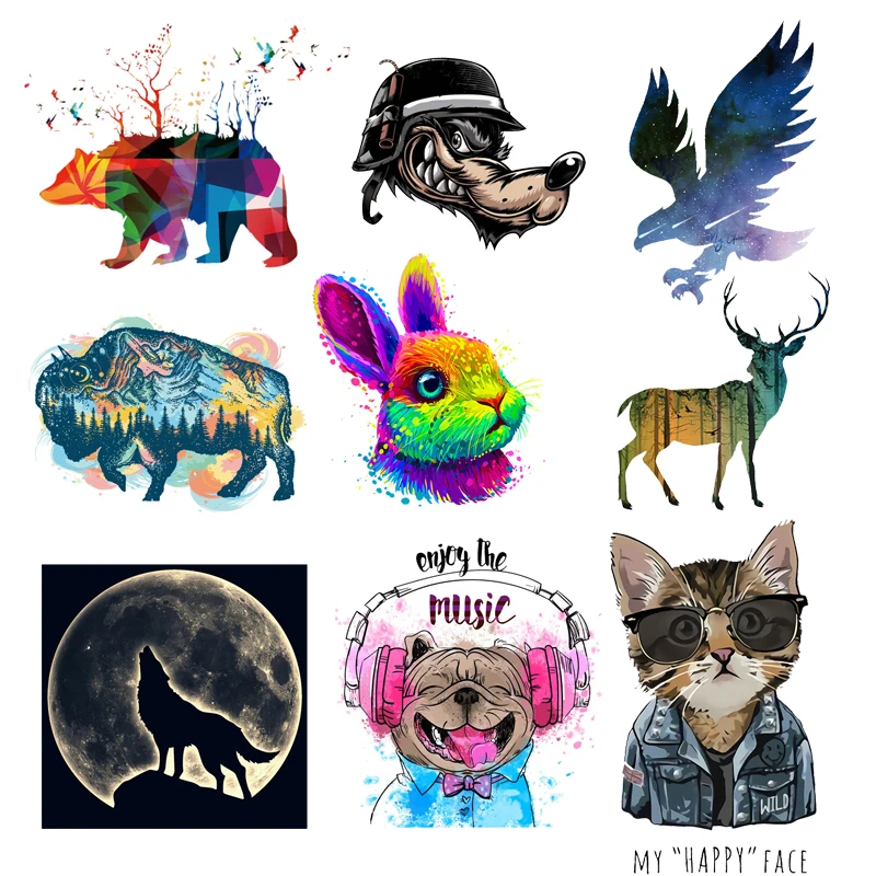 Transferencia de calor de animales coloridos para ropa, parches termoadhesivos, parches para planchar para ropa, pegatinas para camisetas DIY