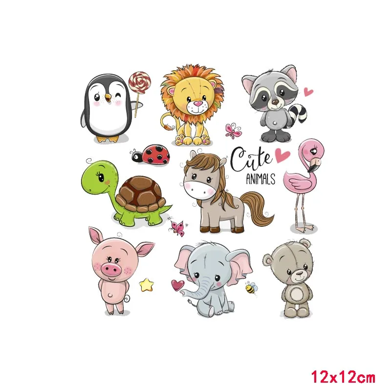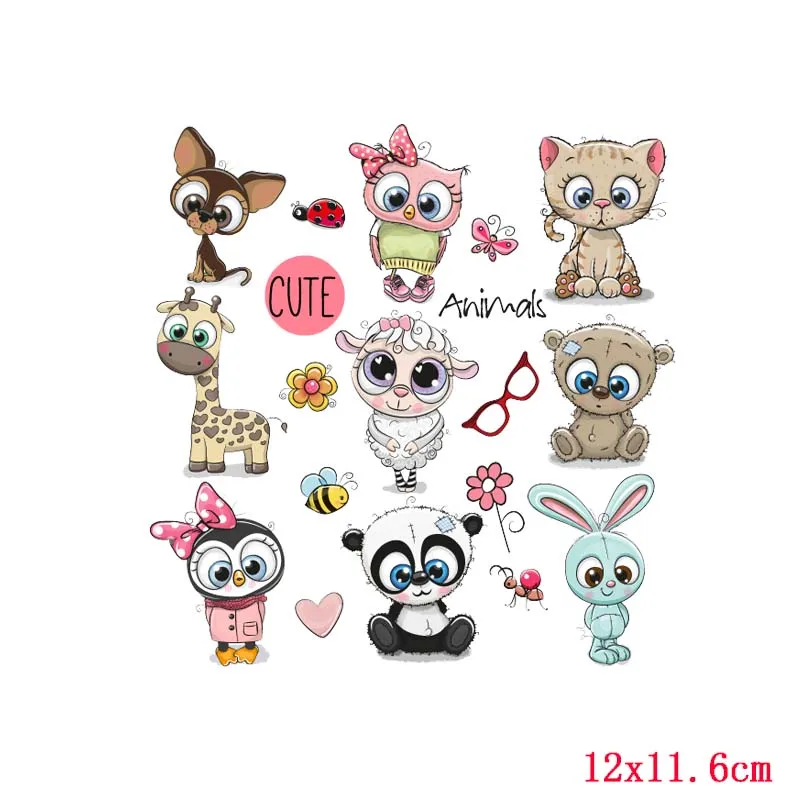 Transferencia de Calor con Estampado de Animales de Dibujos Animados, Pegatinas de Vinilo para Planchar, Accesorio de Ropa