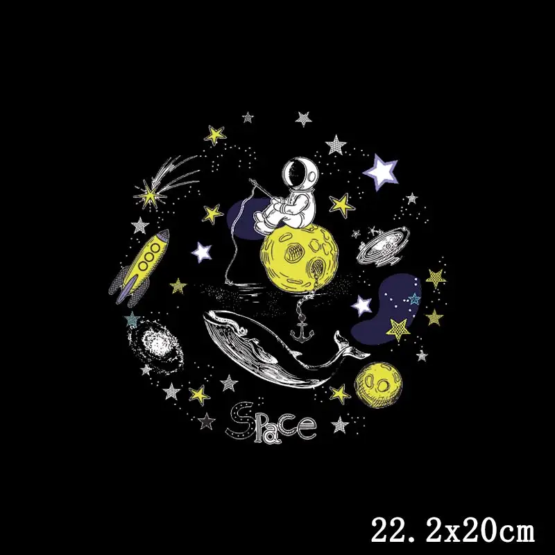 Astronaut Iron On Transfer For Clothing Planet Moon Thermo Sticker On Clothes Patches Diy Applique Tshirt Jeans Thermal Transfer