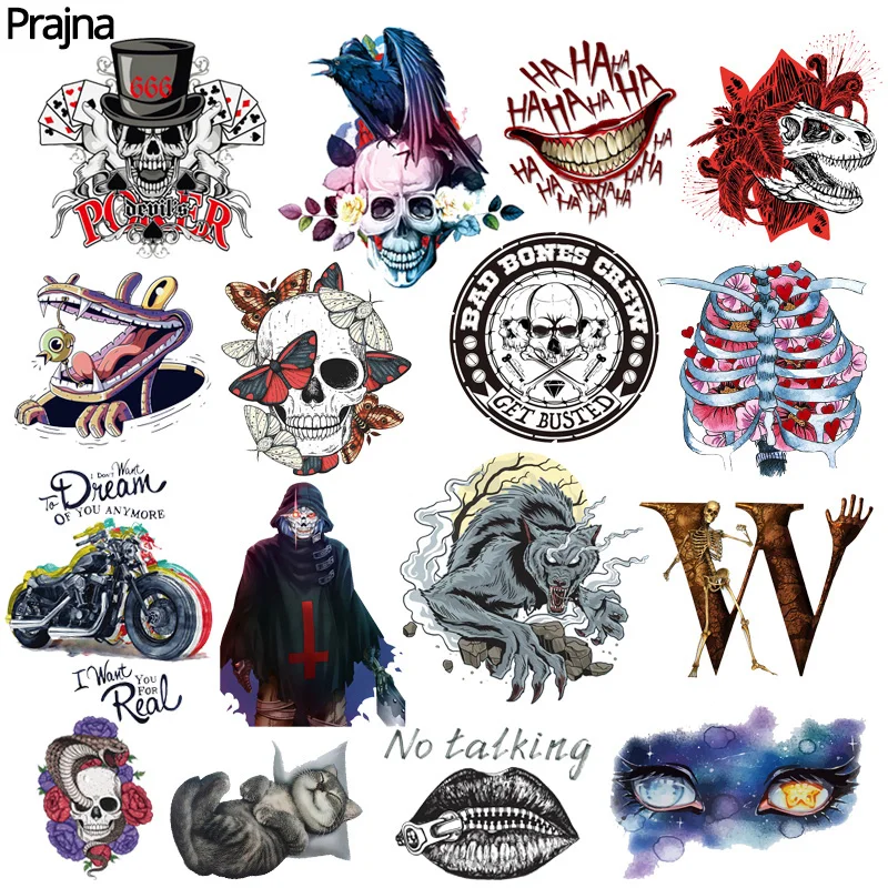 Transferencia de hierro DIY Punk calavera/animales de terror transferencia térmica de calor parche para ropa para camiseta pegatinas de planchado apliques