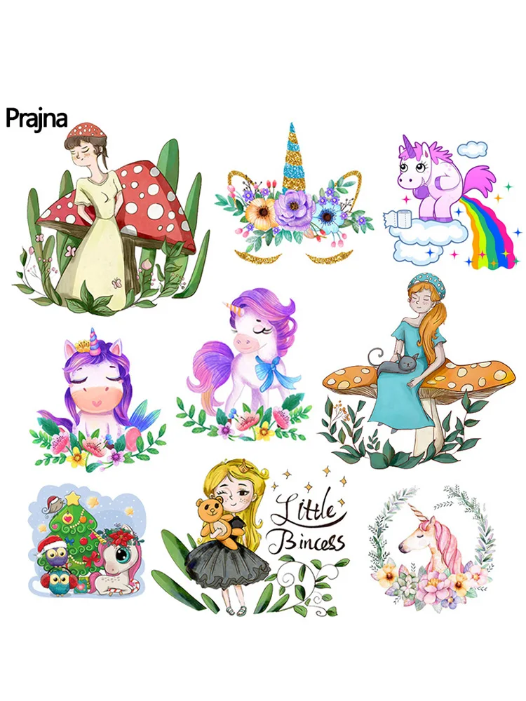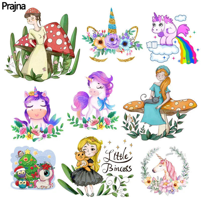 Transferencia de hierro DIY unicornio arcoíris transferencia térmica de calor parche para ropa chica de dibujos animados parches para planchar para apliques de ropa