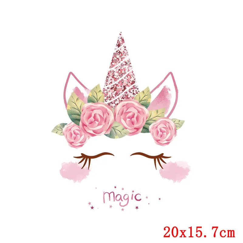Transferencia térmica de calor de unicornio arcoíris para ropa, pegatina de transferencia termoadhesiva de dibujos animados bonitos para ropa de bebé, apliques de Aniaml DIY