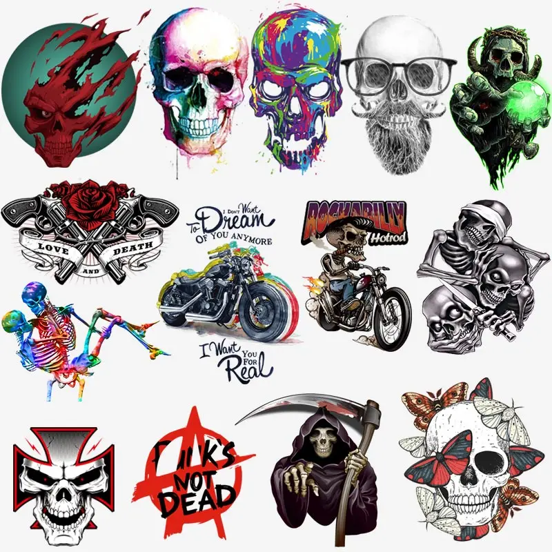 Transferencia de vinilo de calor térmico Punk para ropa, transferencias de calavera para ropa, apliques adhesivos para camiseta lavable DIY