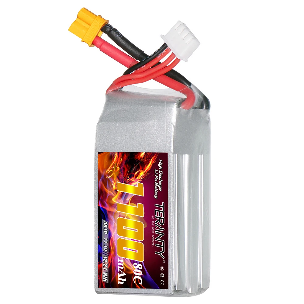 Especificación:Marca: TERANTÍAVoltaje: 11,1 VCapacidad: 1100 mAhTasa de descarga: 80C Continua / ráfaga 160CConfiguración: 3S1PTipo de conector: enchufe XT30Tipo de conector del equilibrador: JST-XHLongitud: 63 mmAncho: 30 mmAltura: 24 mmPeso de la batería: 80 g