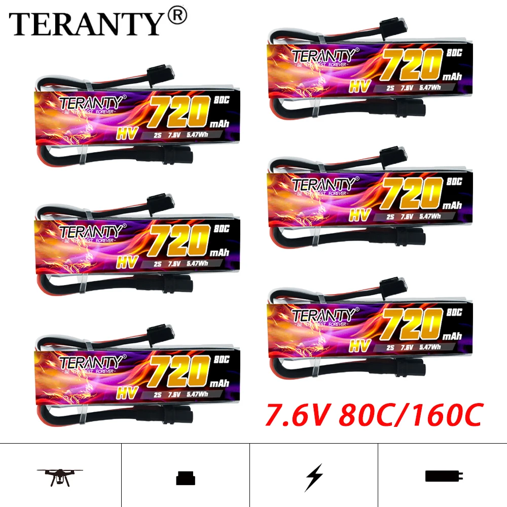 TREANTY-batería de litio de alto voltaje 2S, 720MAH, 7,6 V, 80C, Max 160C, para RC Crossover Aircraft modelo FPV, batería de cámara aérea Lipo