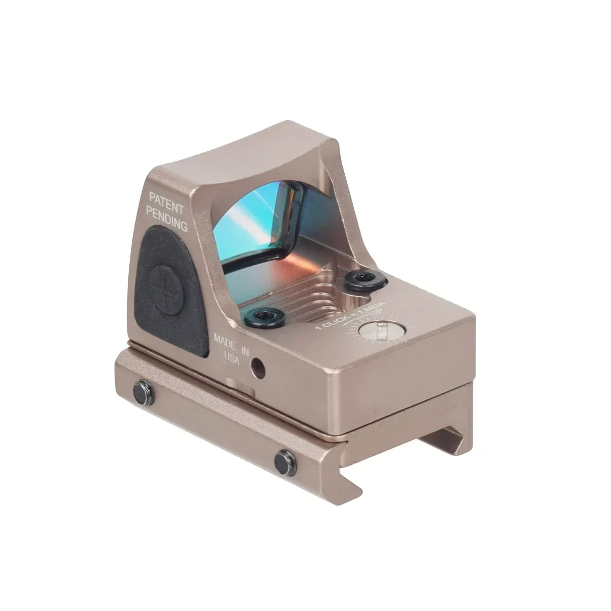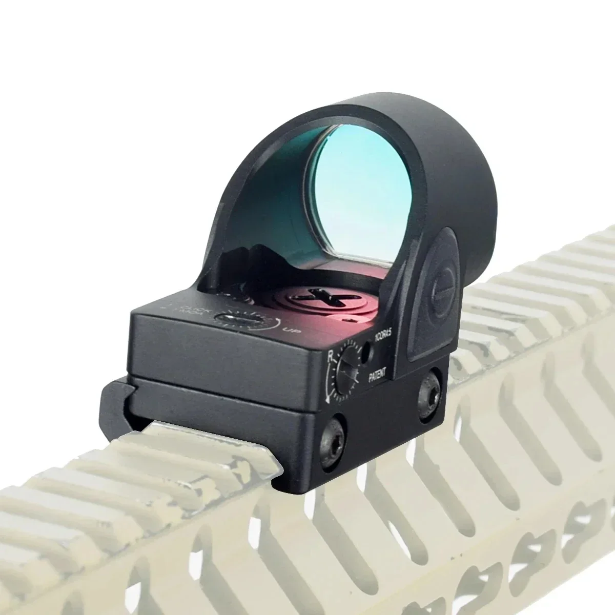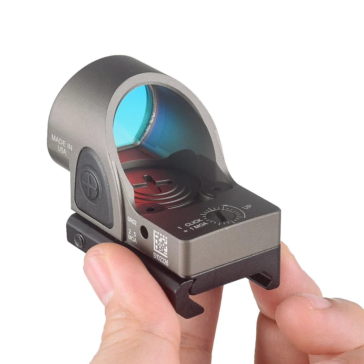 Material: aluminio de aviación 6061 Mecanizado CNC de precisión Superficie anodizada dura Color retícula Rojo Tipo de batería: CR2032 (incluida) Con cinco configuraciones de brillo amables, el retícula se puede ajustar manualmente presionando los botones más orminus a cada lado de la unidad.
