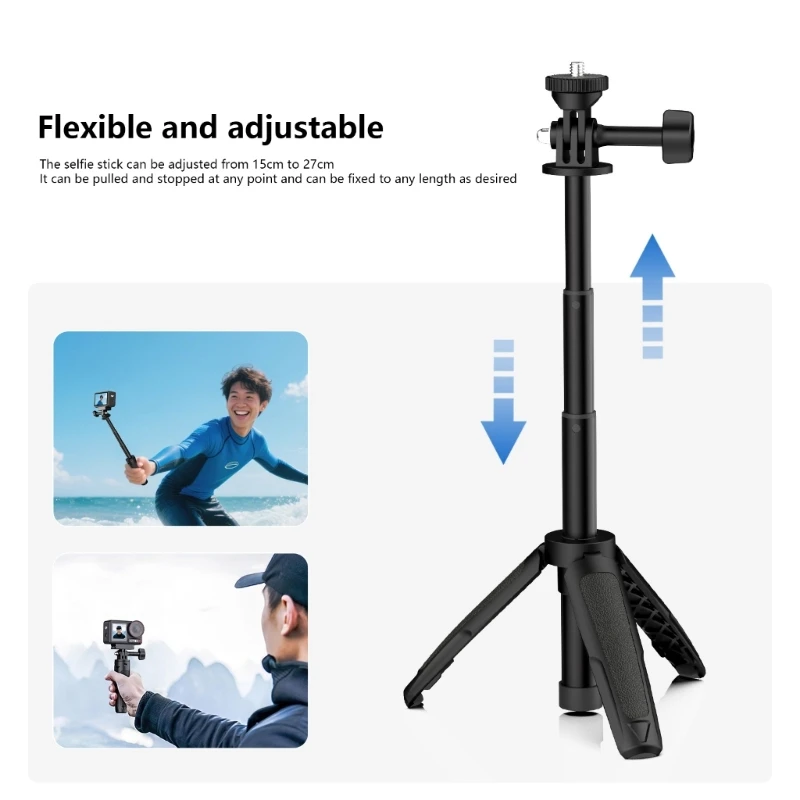 Características:OOTDTYEl trípode selfie de modo doble combina la computadora portátil con una configuración de escritorio estable, con un soporte de tornillo universal de 1/4 de pulgada e interfaces de liberación rápida de dos garras para una compatibilidad perfecta con cámaras de acción y empuñaduras para teléfonos inteligentes.