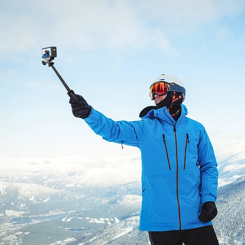 Fabricado con una construcción liviana de aleación de aluminio, este selfie se extiende a través de postes telescópicos de tres secciones hasta 27 cm de largo mientras mantiene un tamaño de portabilidad cuando está plegado.