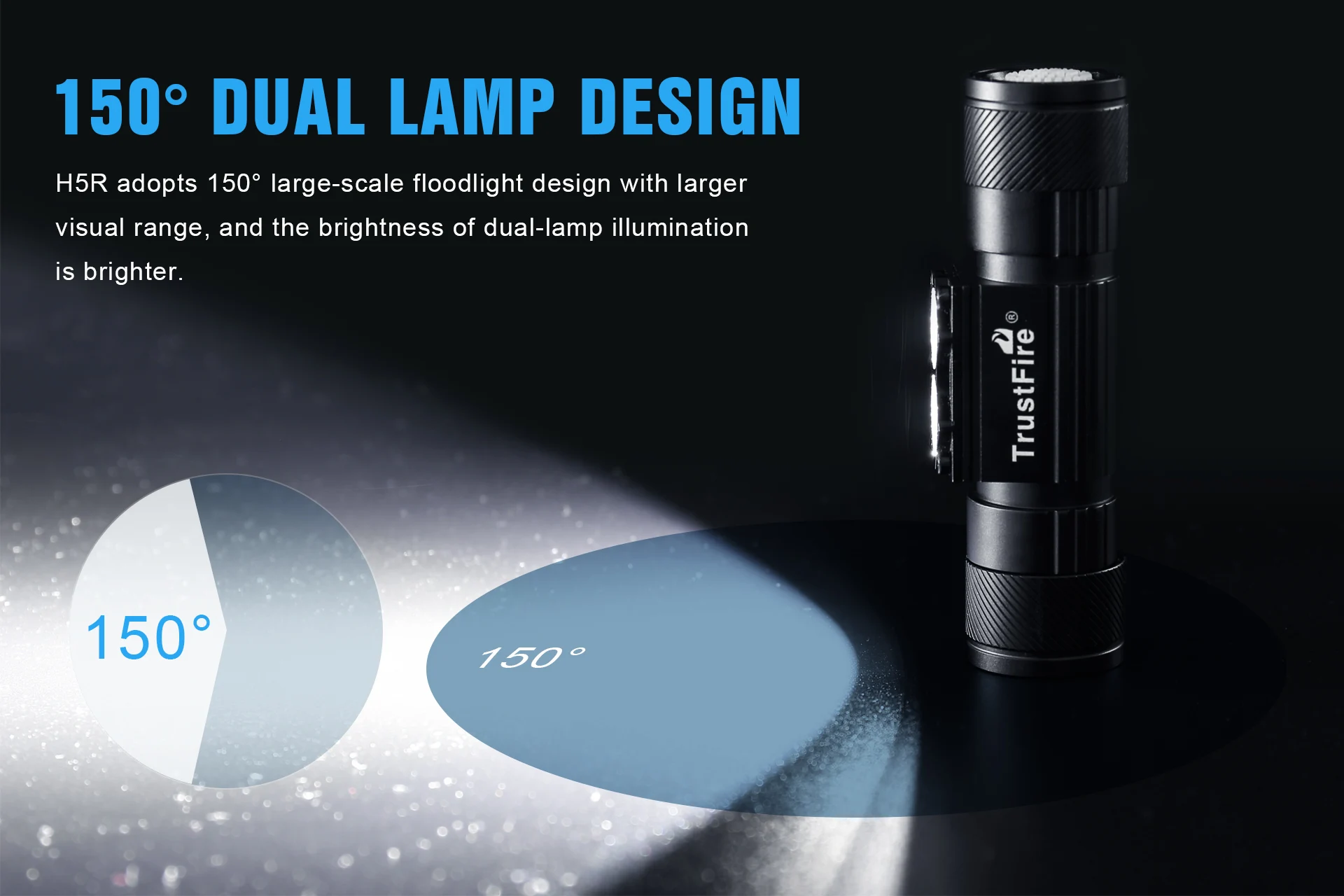 H5R adopta un diseño de reflector a gran escala de 150 ° con un mayor rango visual, y el brillo de la iluminación de doble lámpara es más brillante.